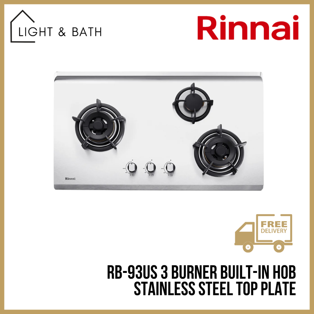 Rinnai RB-93UG/US 3-Hyper Burner Built-in Gas Hob (Glass) Or Stainless Steel Top Plate