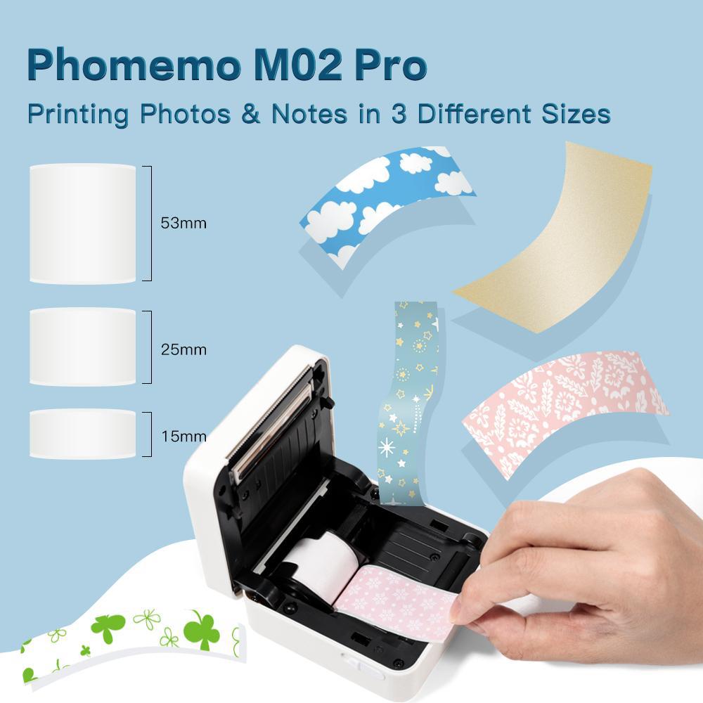 Phomemo M02 Pro Portable Printer Bluetooth Mini Thermal 300dpi Wireless Pocket Printer Mobile Phone Android IOS Photo Printer With 3 rolls Sticker