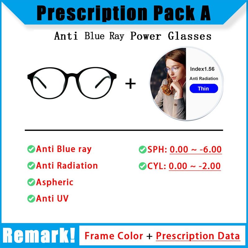 Retro Metal Frame Spectacles Women Men Lightweight Anti Blue Light Computer Glasses Index 1.56 Prescription Astigmatism with Cylindrical Degree Glasses -1.0/1.5/2.0/2.5/3.0/3.5/4.0/5.0/6.0