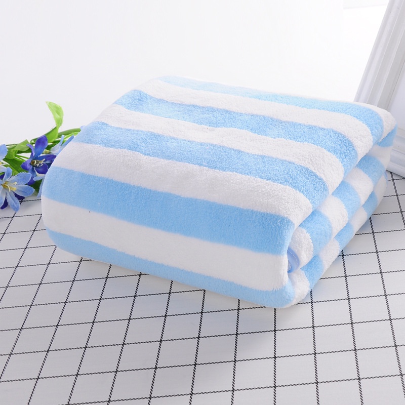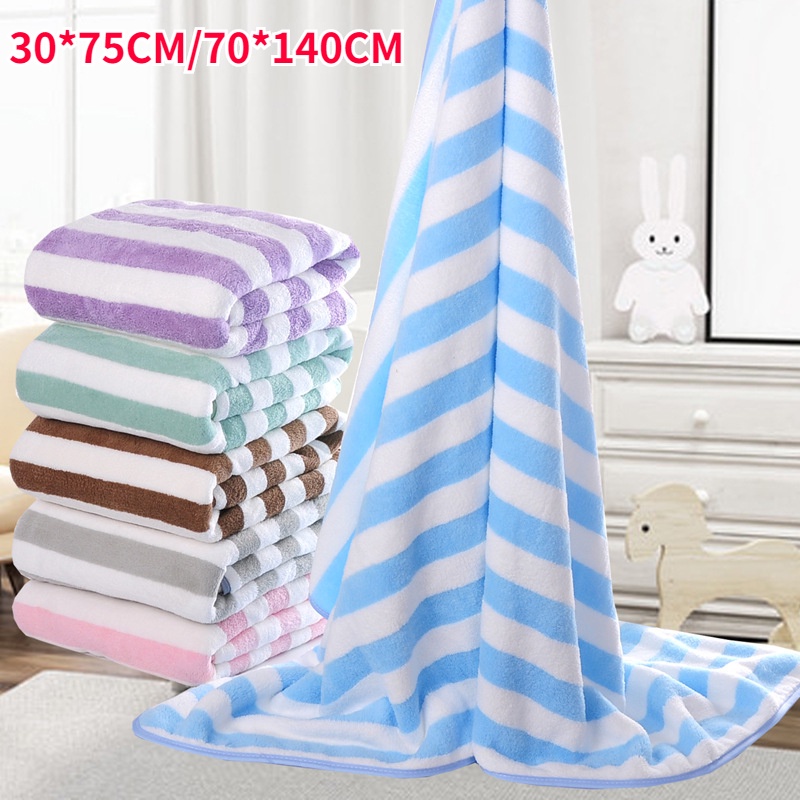 2 Size Coral Fleece Bath Towel Stripe Soft Microfiber Face Towel Quick Drying Spa Beach Towel