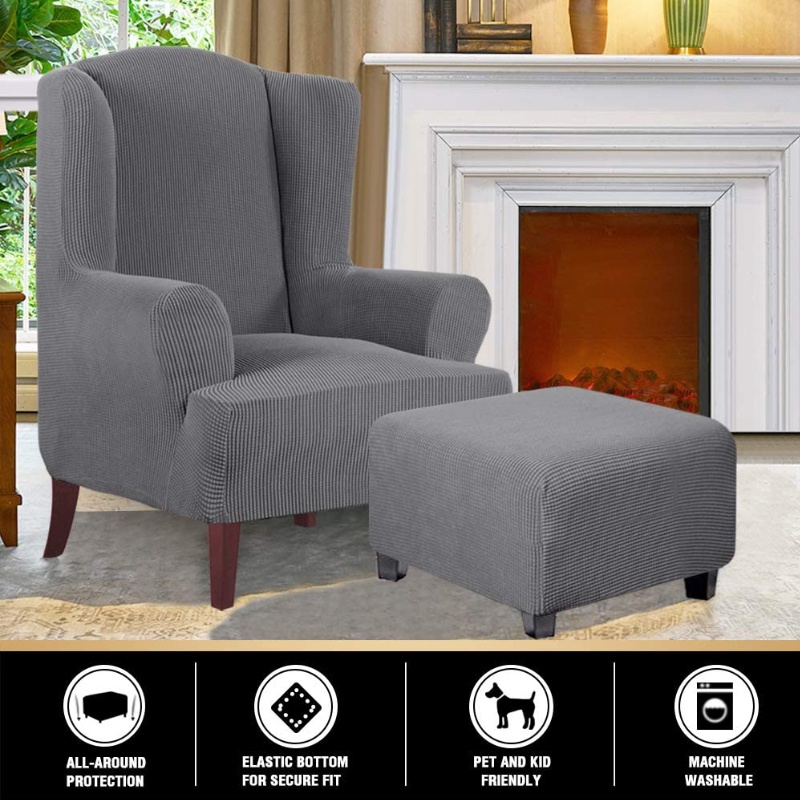 Square Jacquard Ottoman Covers Stretch Footstool Cover Bench Stool Cover Washable Furniture Protector Stool Covers