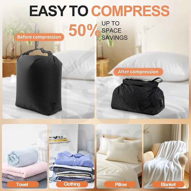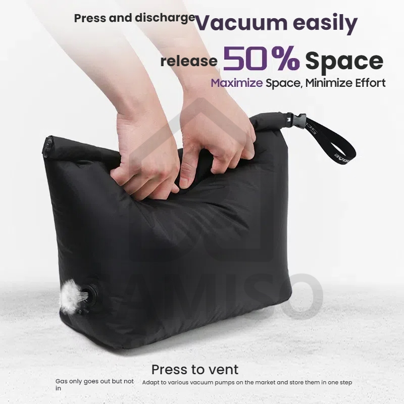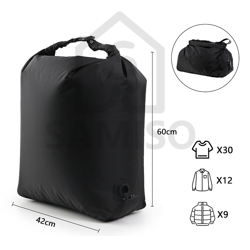 🇸🇬 SG Stock Travel Vacuum Compression Bags Press to Deflate, Reusable Waterproof Storage Bag, Airtight Valve Nylon Organiser for Clothing, Space Saving Wet Dry Bag for Dirty Clothes