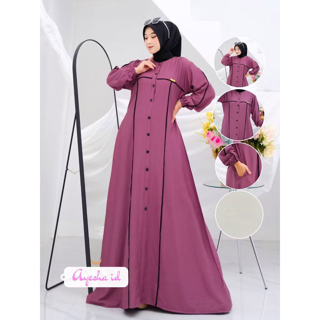 Shelina Dress Gamis Crinkle Airflow List White Jumbo Wudhu Friendly Gamis Modern Gamis Muslimah