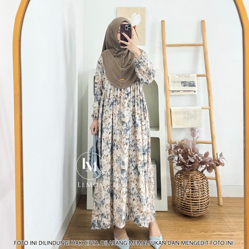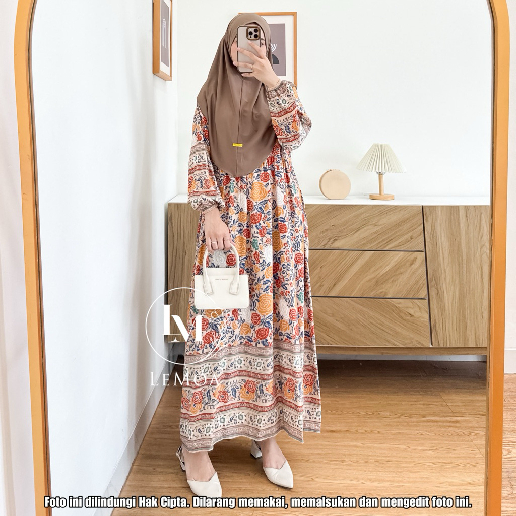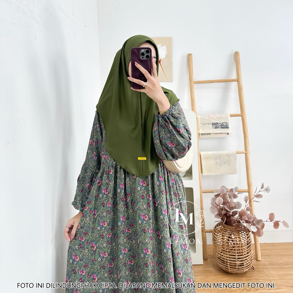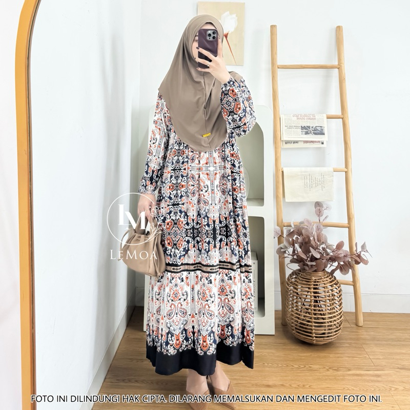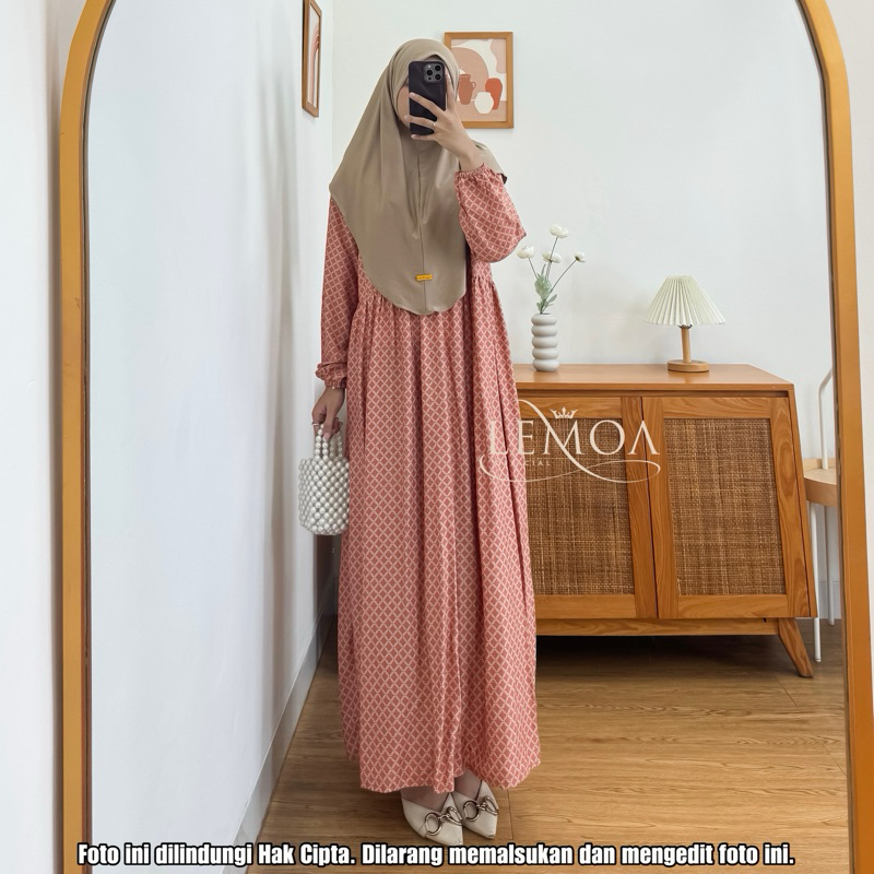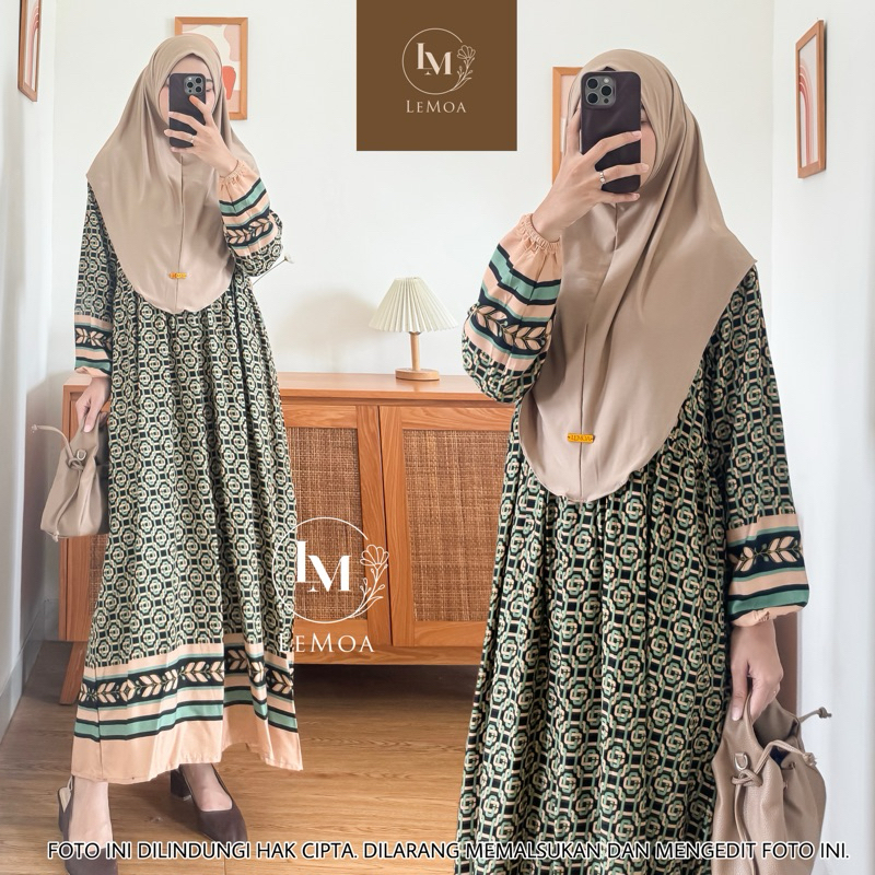 Arsy Midi Dress and Hijab Set By Lemoa Rayon Gamis Motif Eid Clothes Muslim Women's Clothing Gamis Modern Midi Dress Muslimah