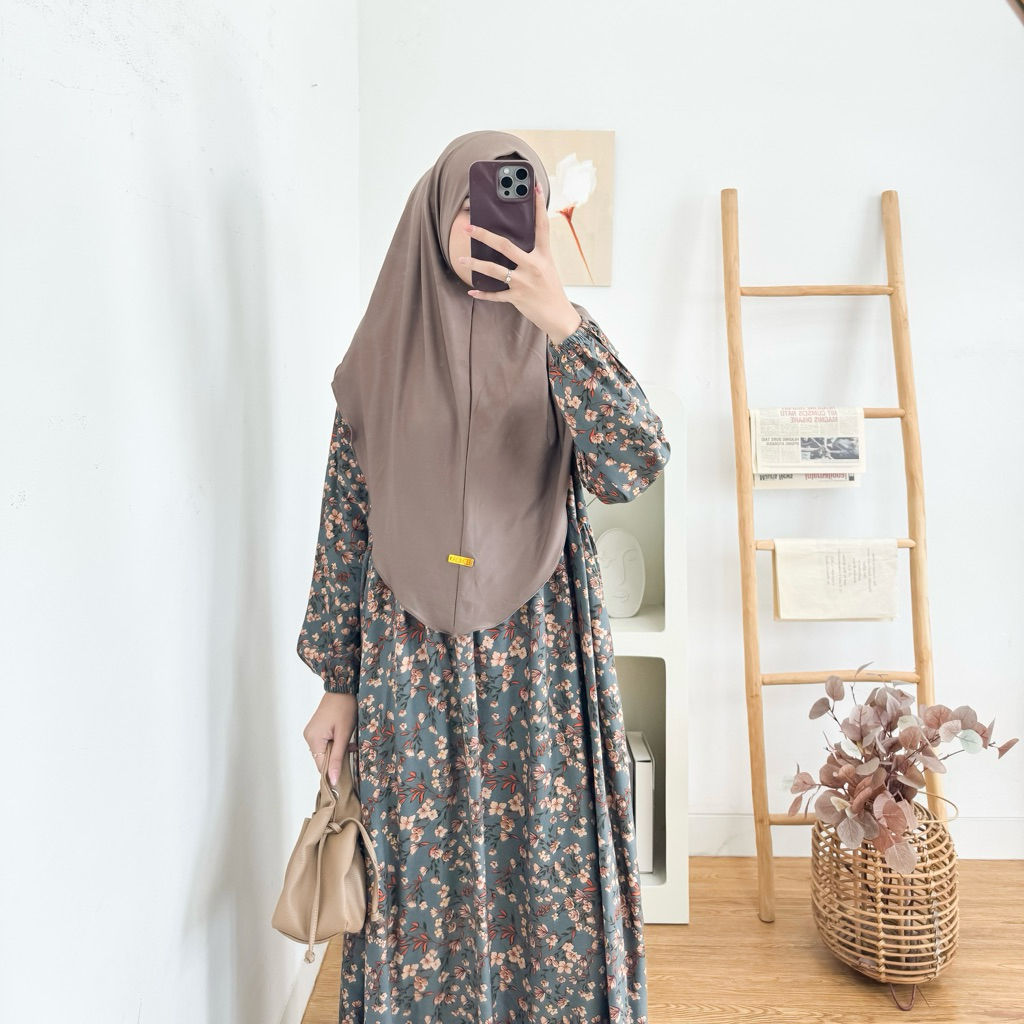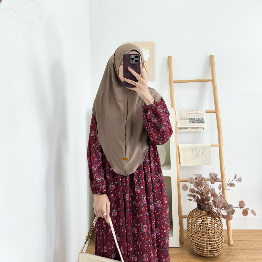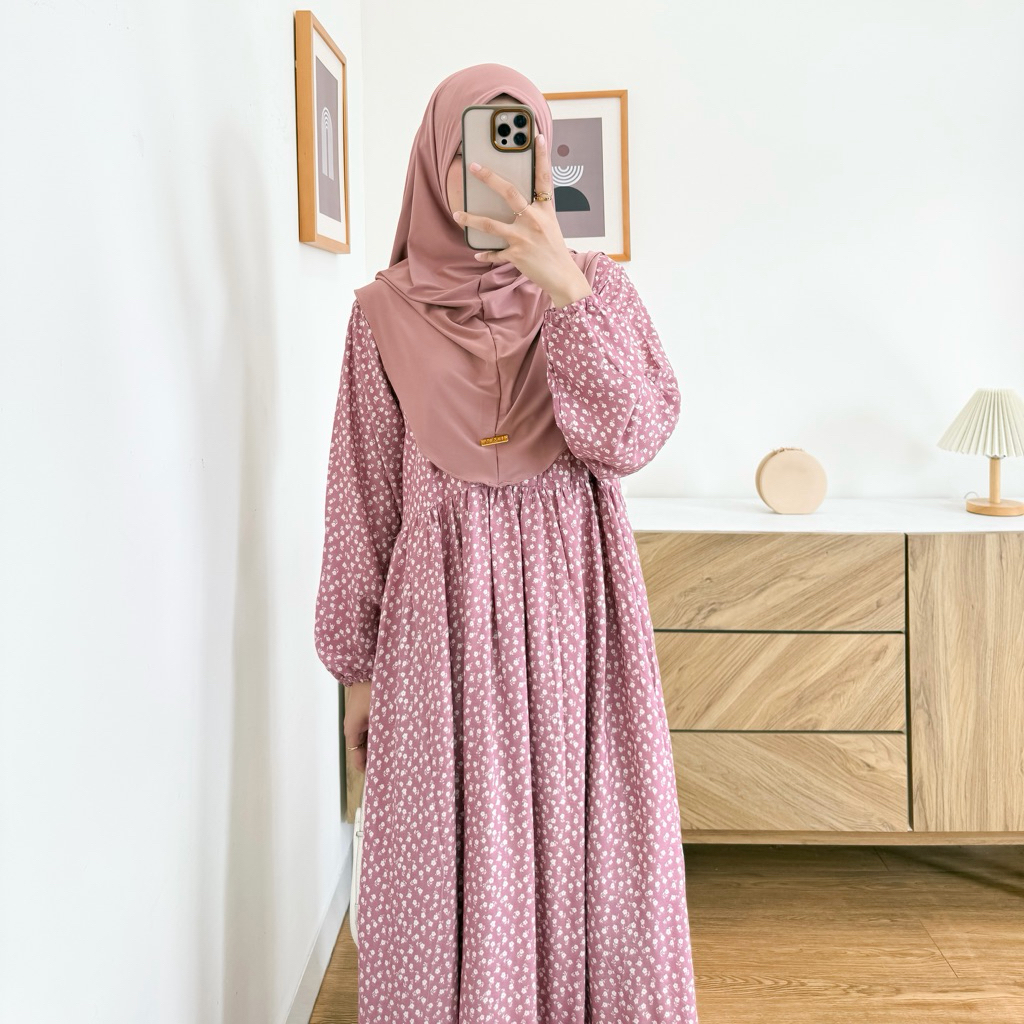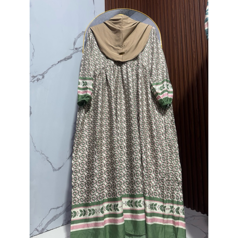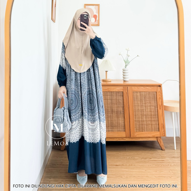 Arsy Midi Dress and Hijab Set By Lemoa Rayon Gamis Motif Eid Clothes Muslim Women's Clothing Gamis Modern Midi Dress Muslimah