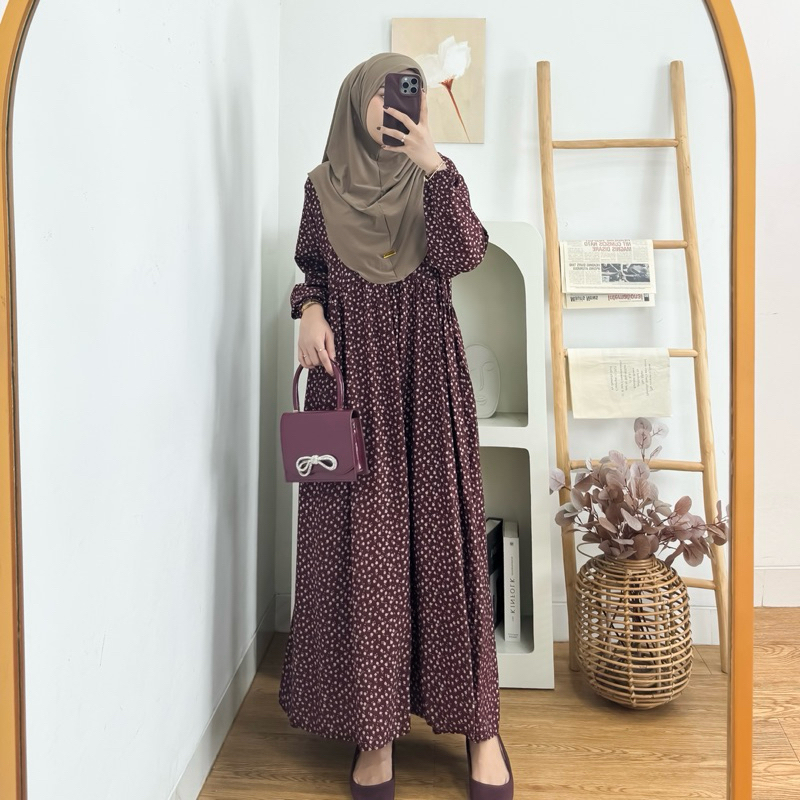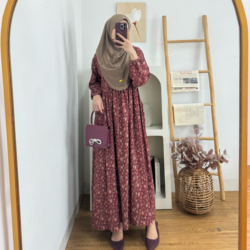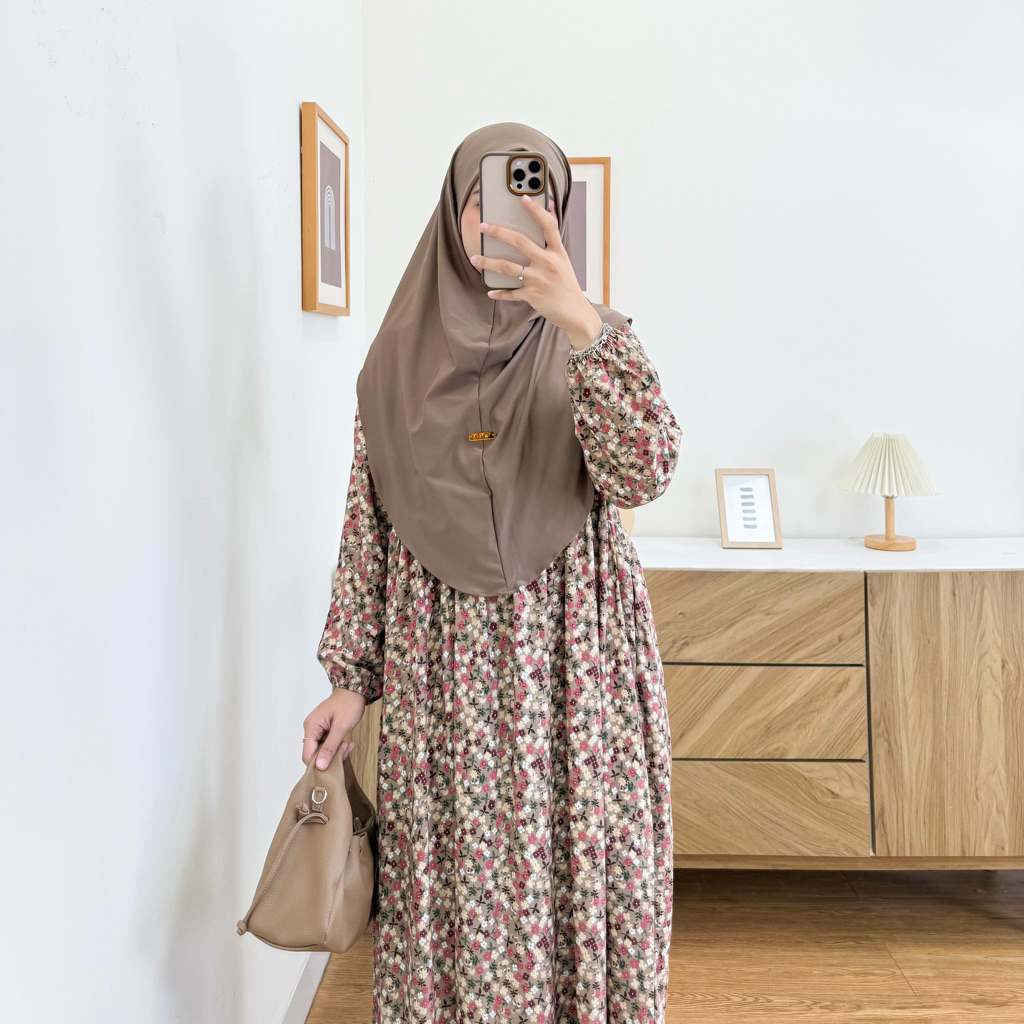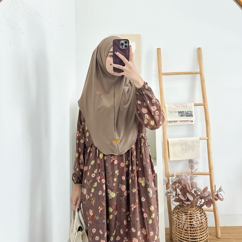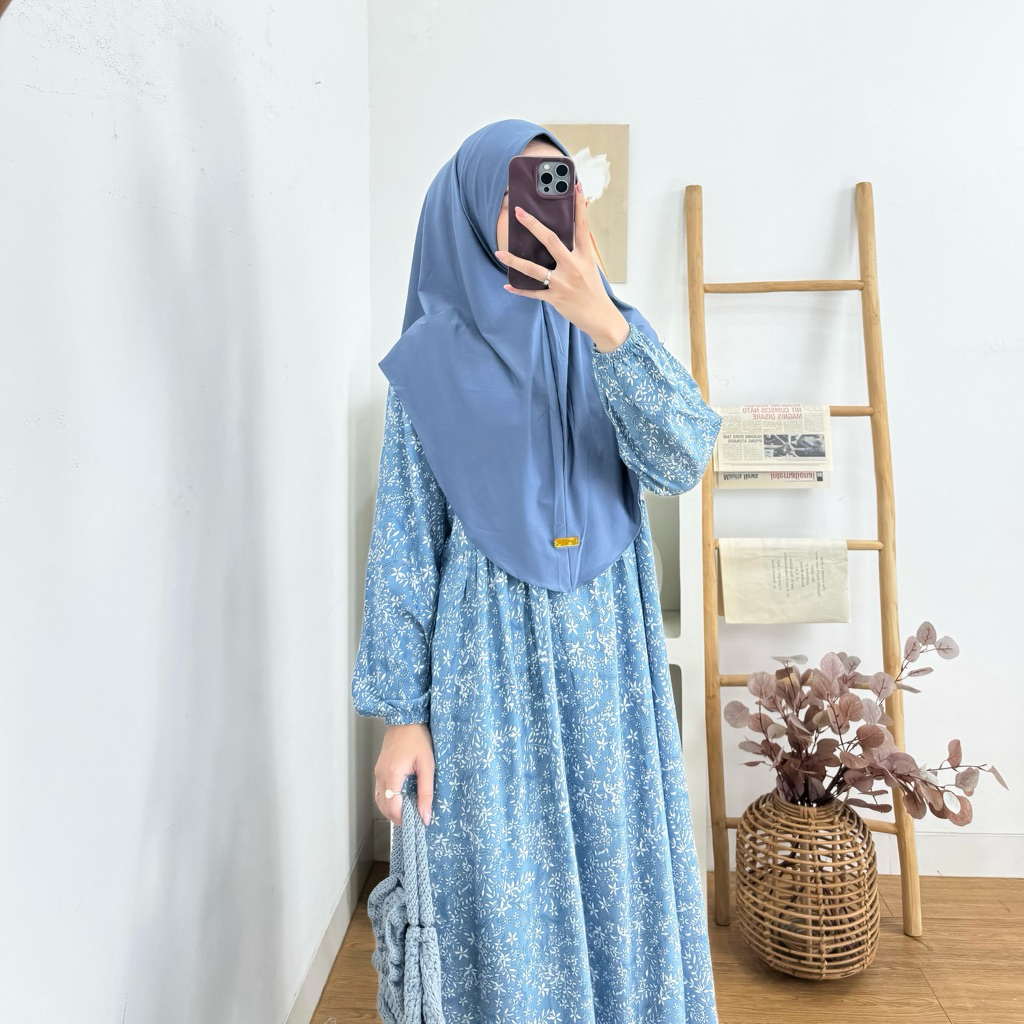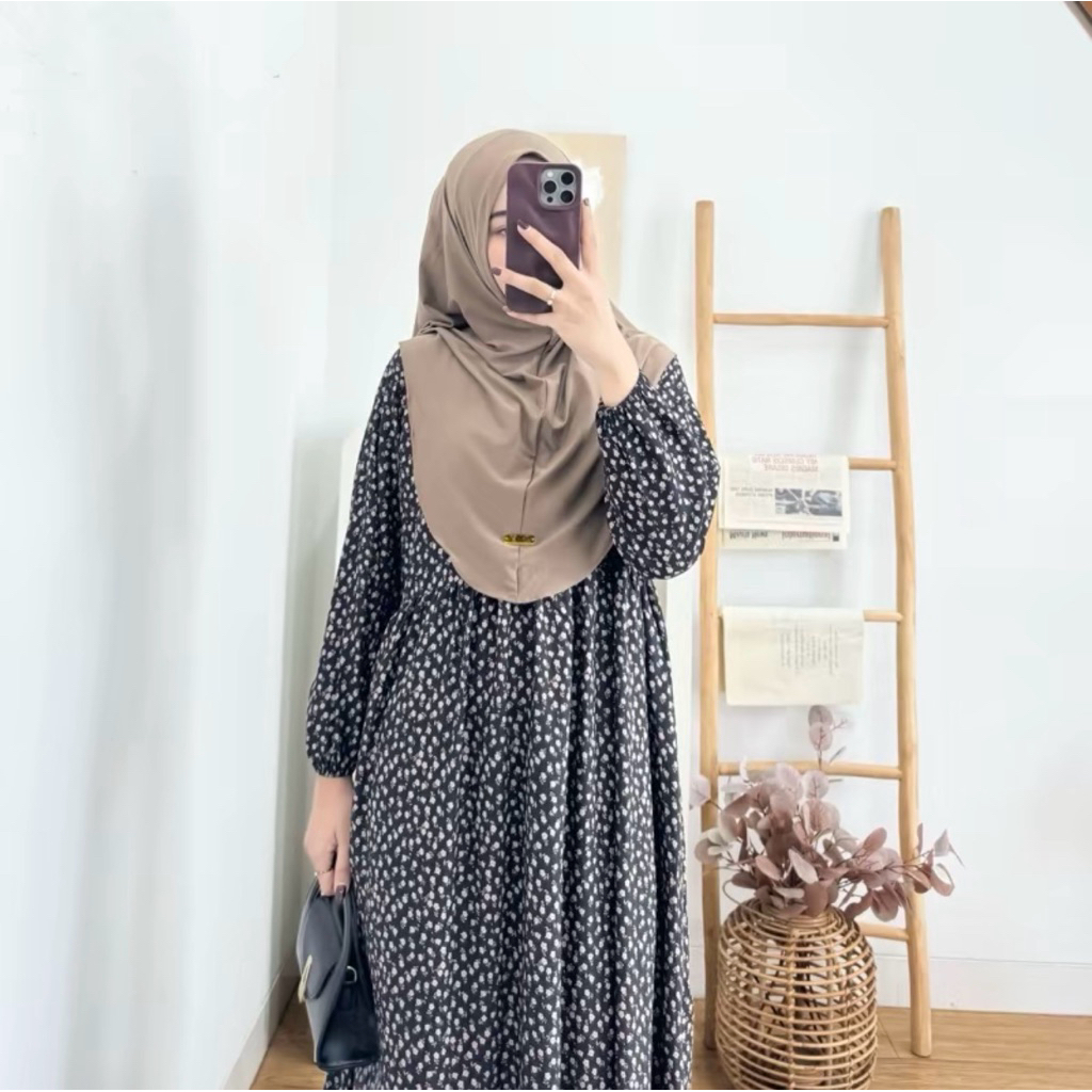 Arsy Midi Dress and Hijab Set By Lemoa Rayon Gamis Motif Eid Clothes Muslim Women's Clothing Gamis Modern Midi Dress Muslimah