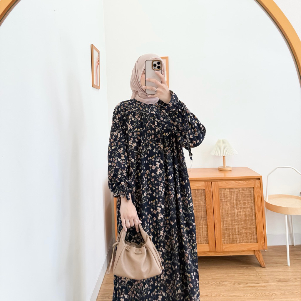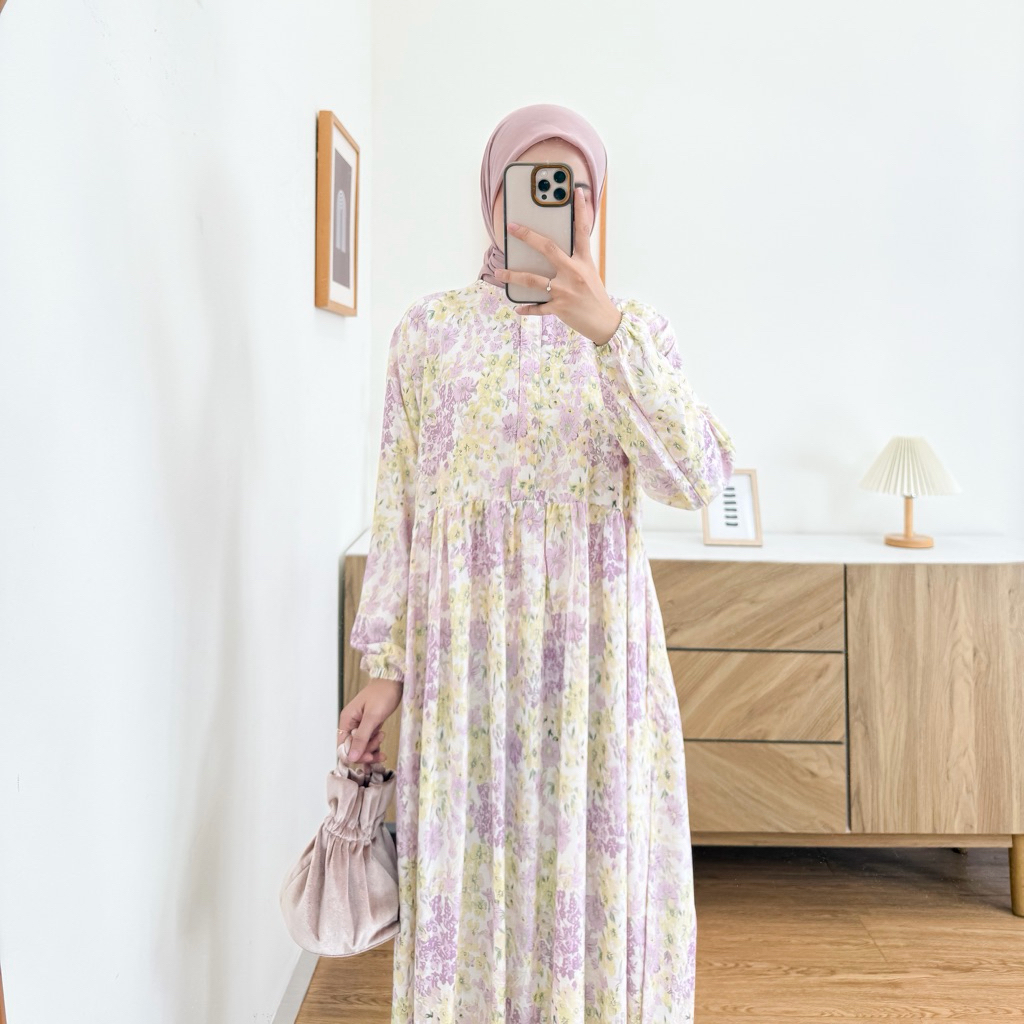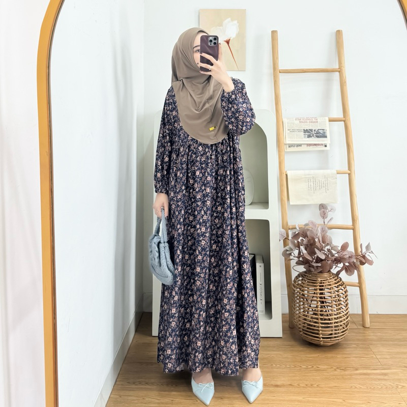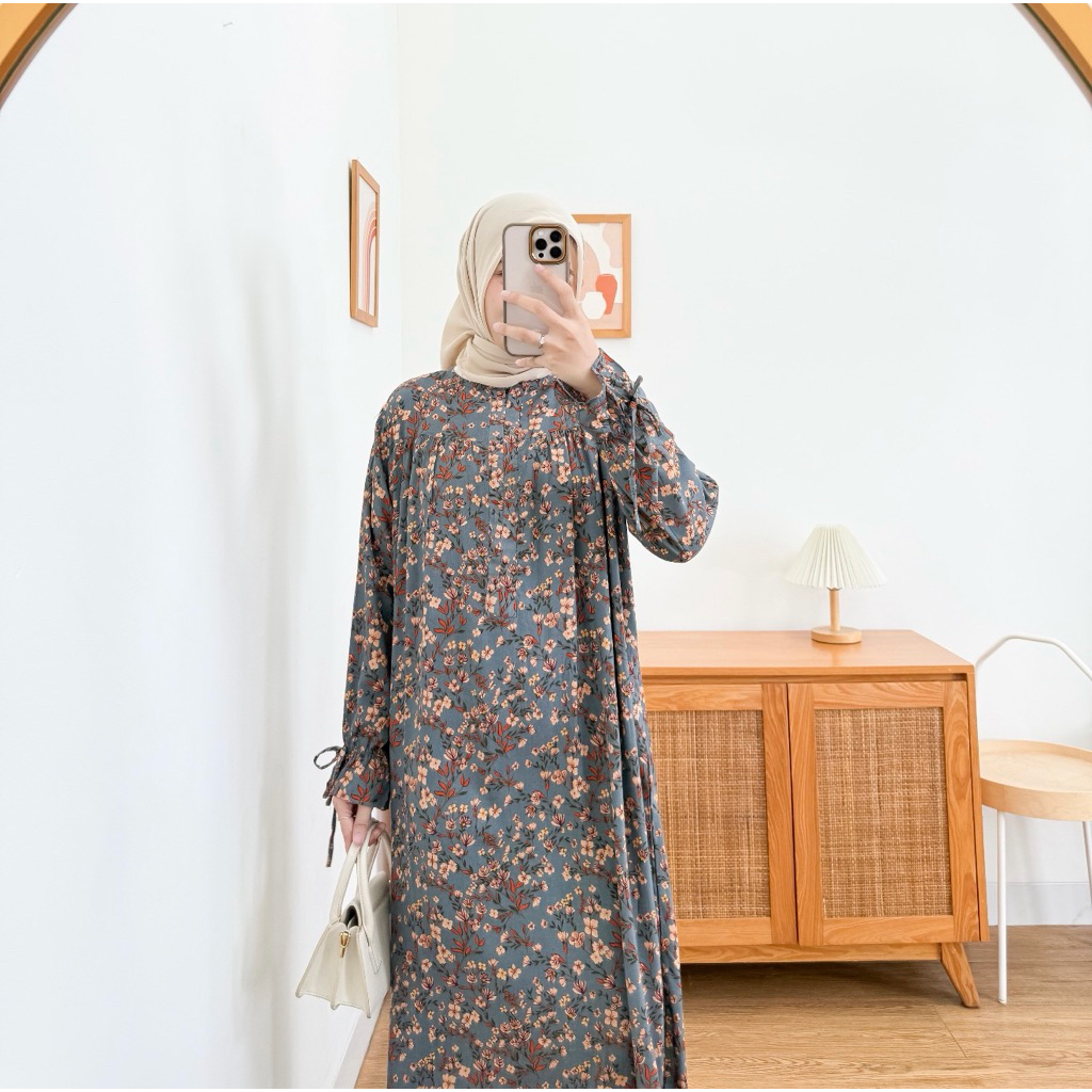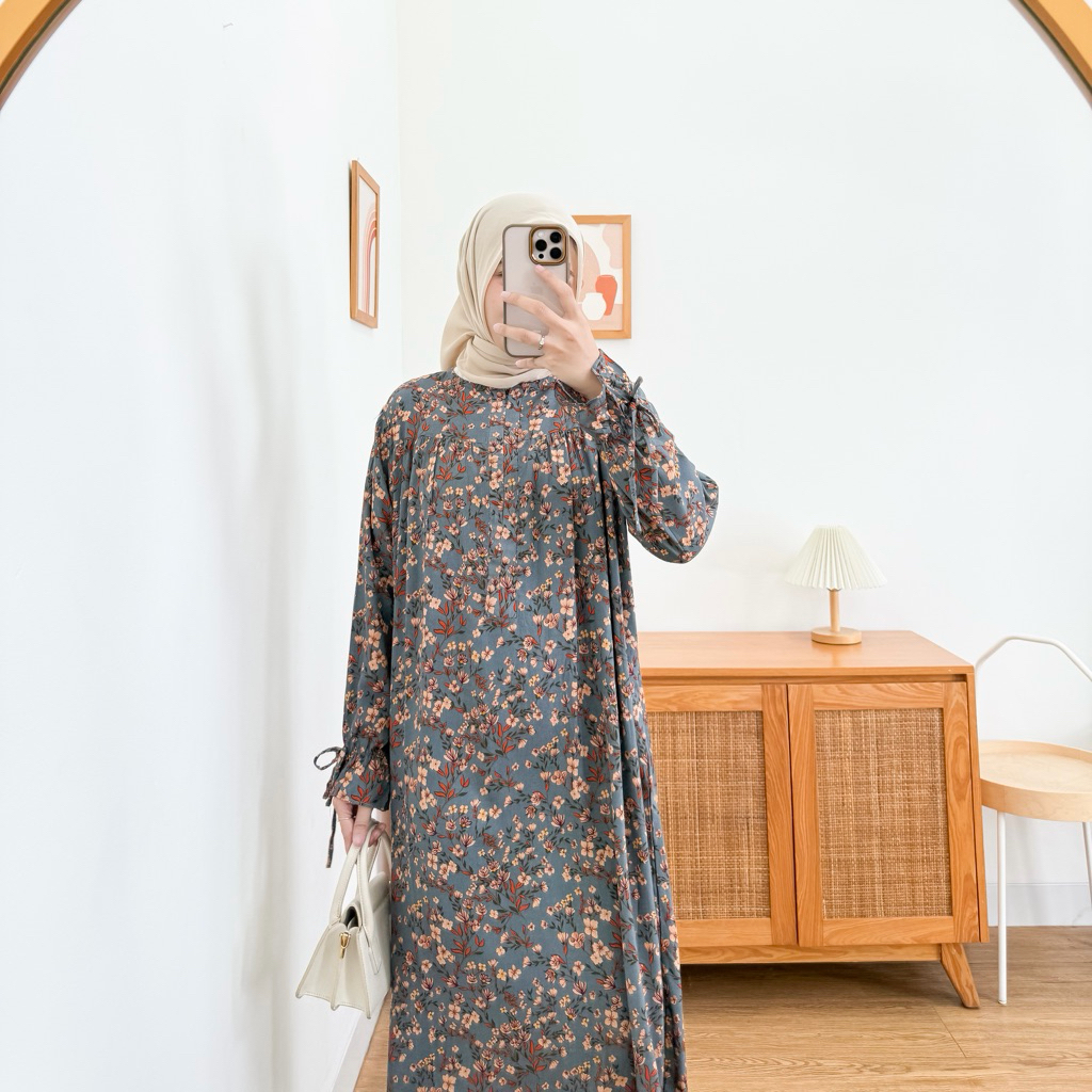Arsy Midi Dress and Hijab Set By Lemoa Rayon Gamis Motif Eid Clothes Muslim Women's Clothing Gamis Modern Midi Dress Muslimah