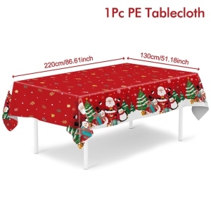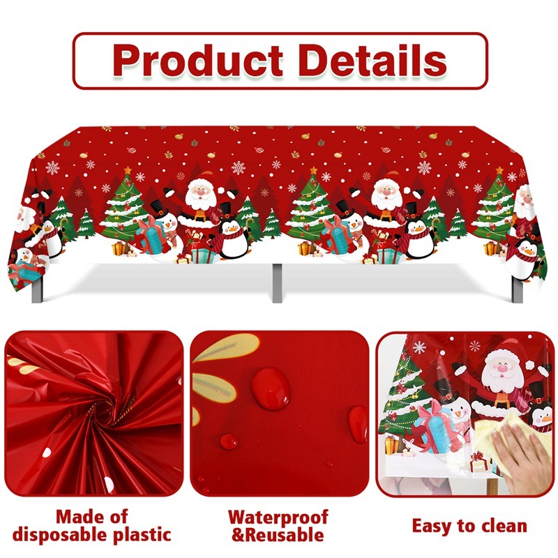 【Waterproof】1.3M*2.2M Merry Christmas Table Cover Classic Santa Claus Design Table Cloth 6 Seater Xmas Decor Christmas Decorations For Home 2025