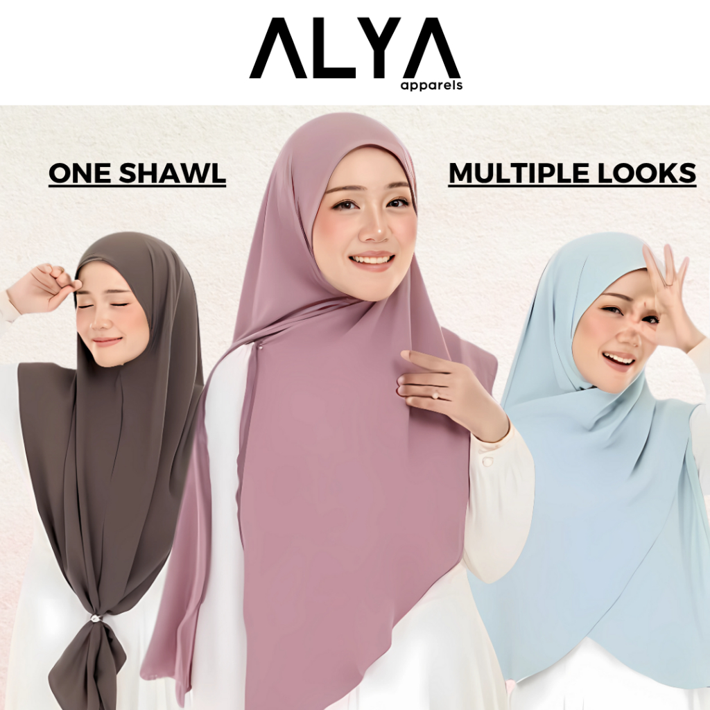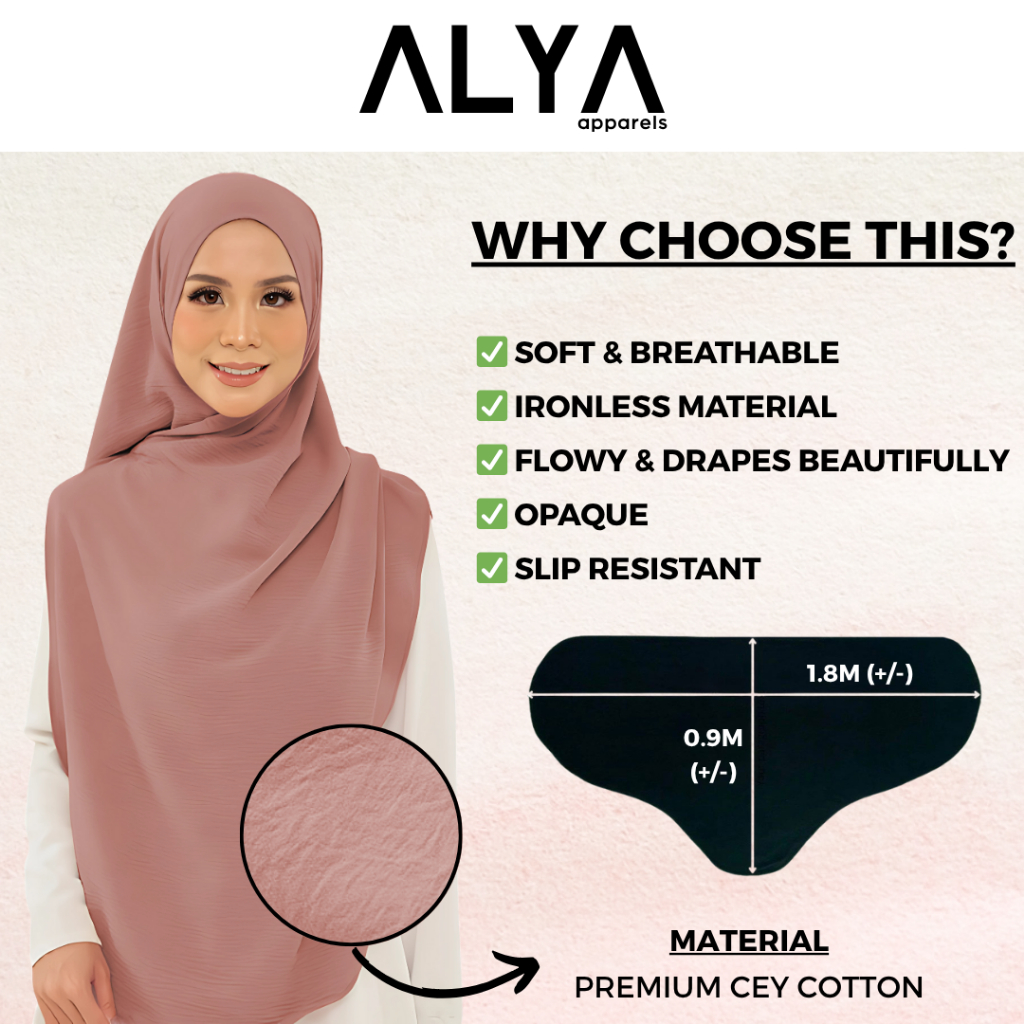 Premium Cey Cotton Curve Shawl ( Ironless Halfmoon Triangle Tri Shawl Hijab Labuh Tudung Butterfly )