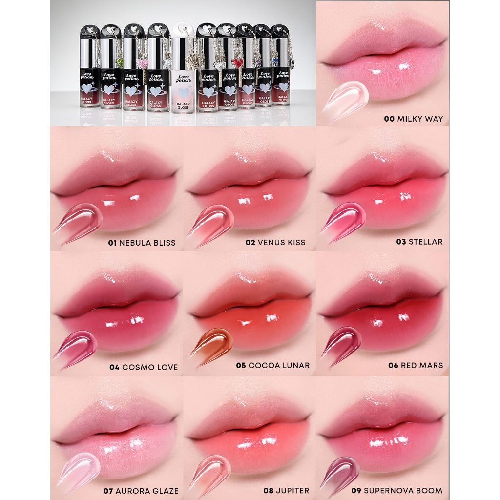 Promotion Buy 1 Get 1 Free Lovepotione Galaxy Gloss Lip Oil V2 Sok V2 Keychain For Every Box lip gloss