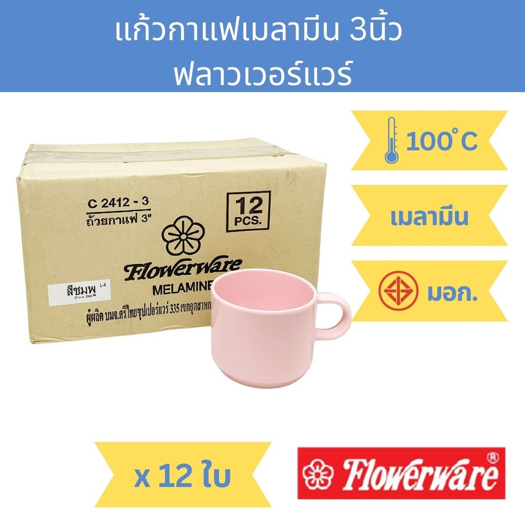 [12 Boxes] 3-Inch Melamine Coffee Mug Srithai Superware Vanda/Flowerware Cup.