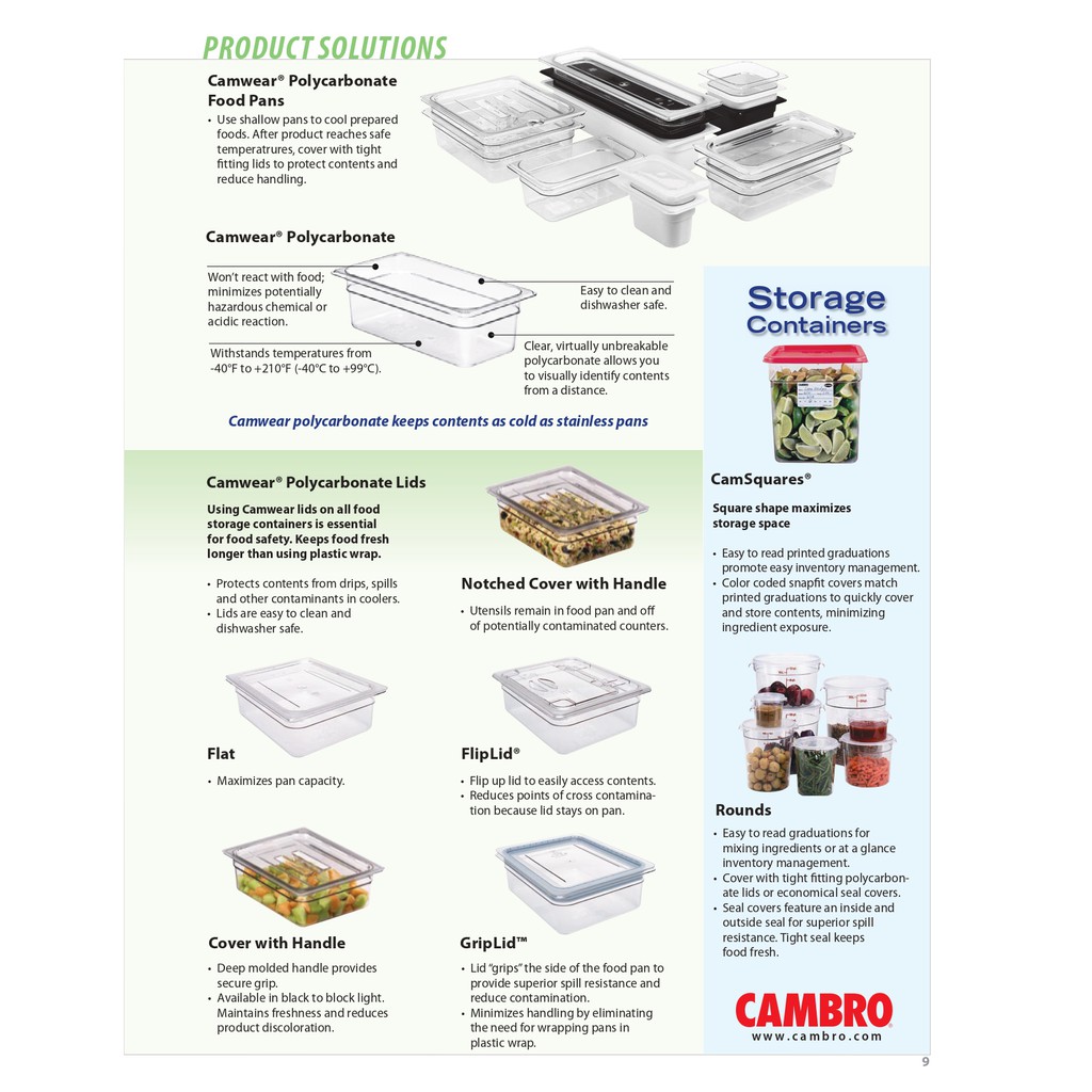 CAMBRO Plastic Raw Material Storage Box Pc Food Grade Heat-Cold Resistant It Won't Break When Dropped. Tray Preservation GN1/4 (26.5x16.2cm.) CAM1-4 Food Storage Container