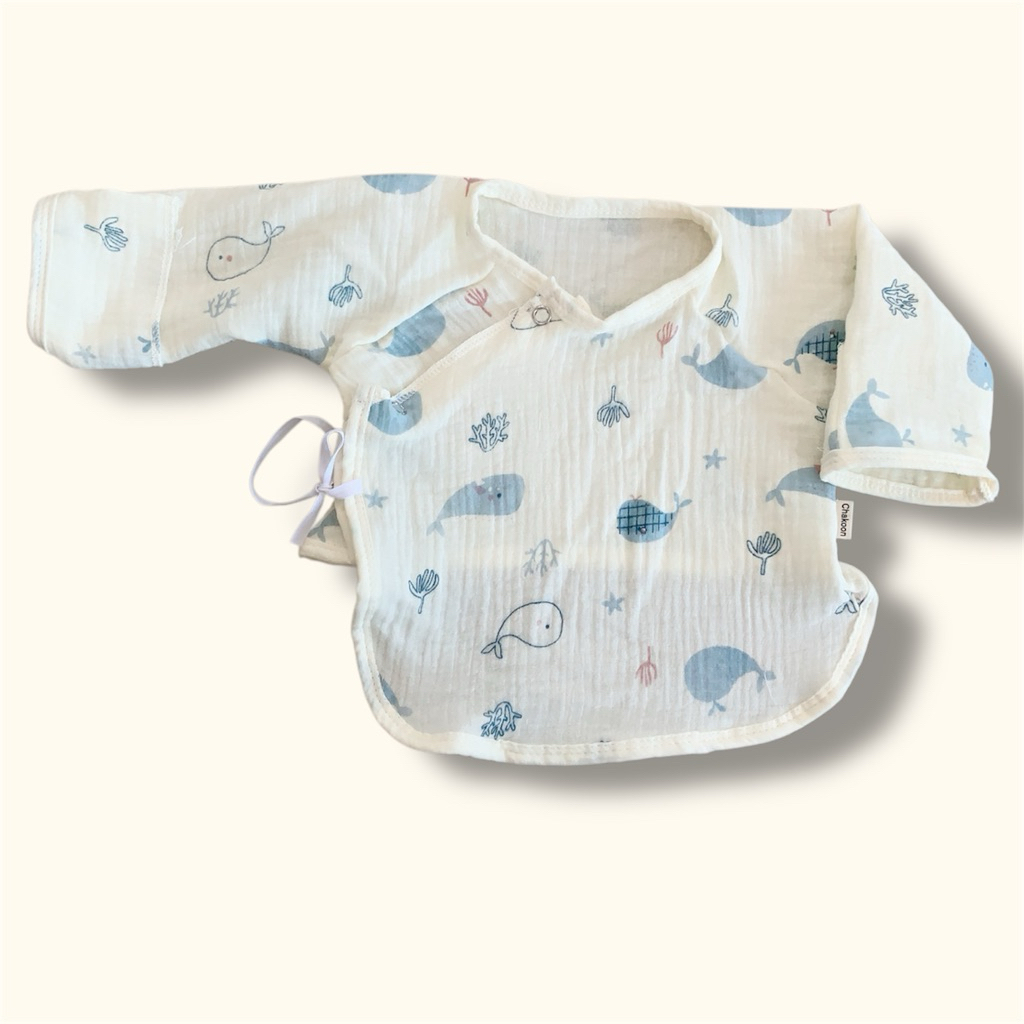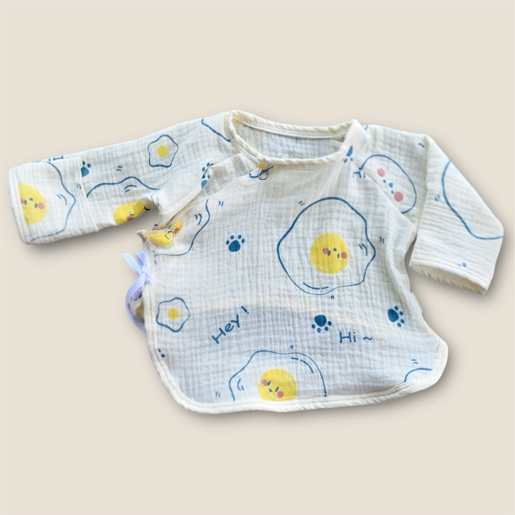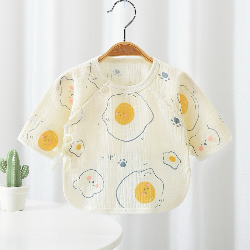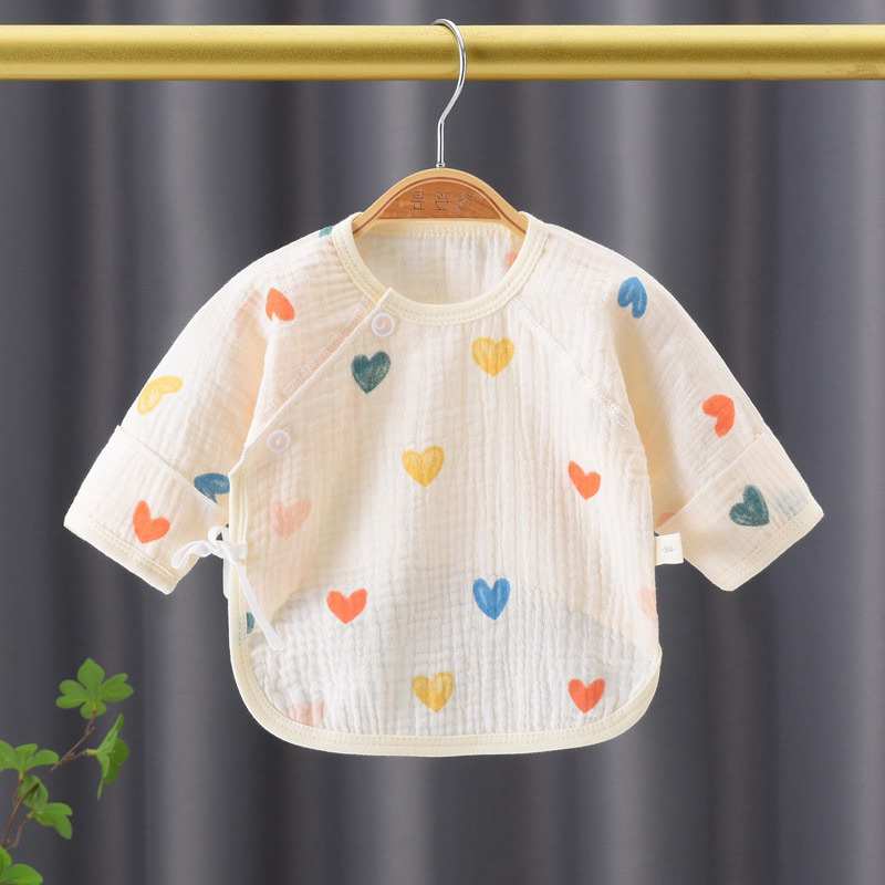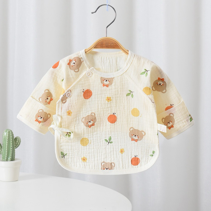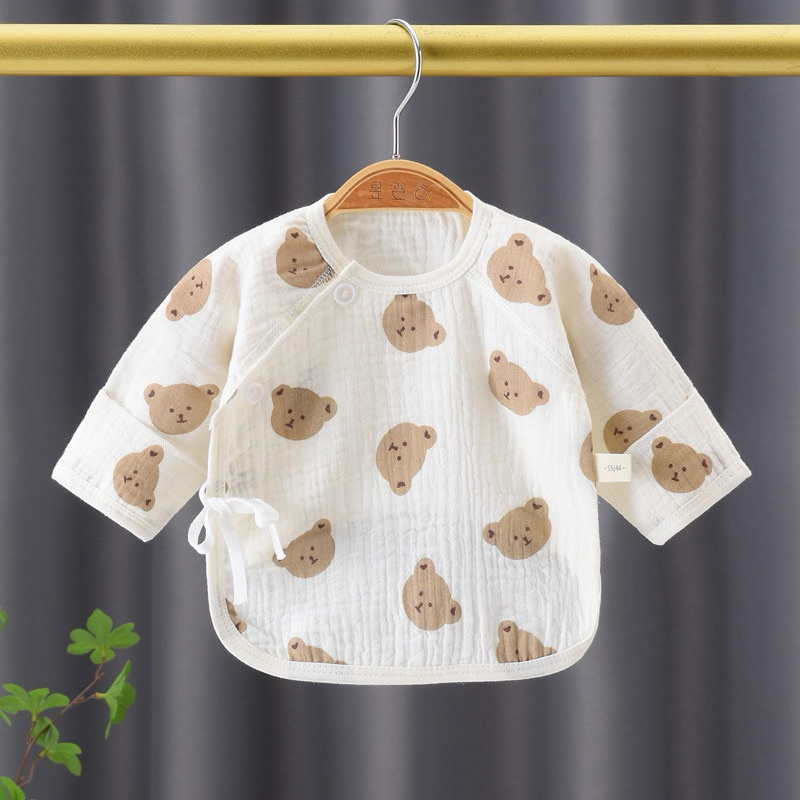 Newborn Baby Long Sleeve Shirt Wrinkled Muslin Fabric Children's Long-Sleeved With Front Tie Comfortable To Wear