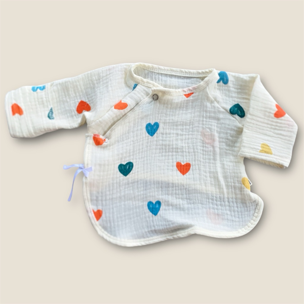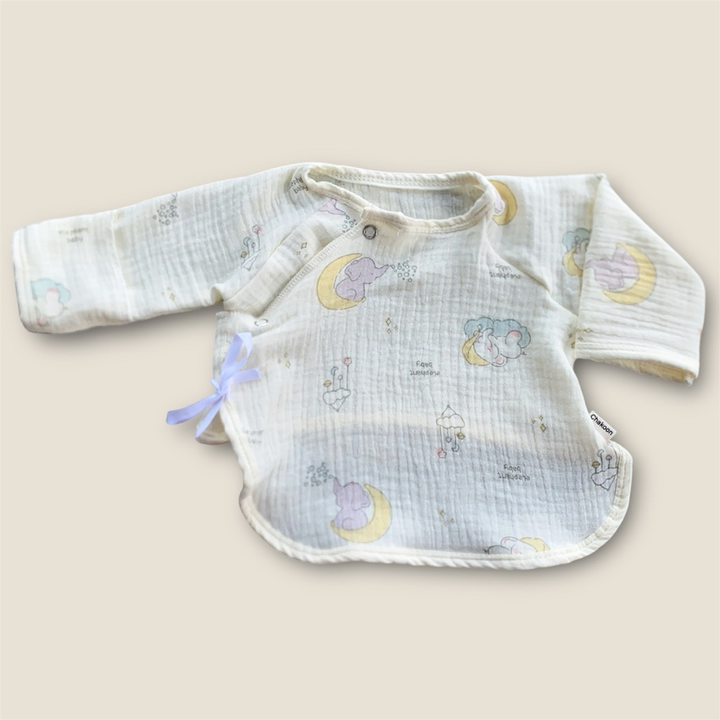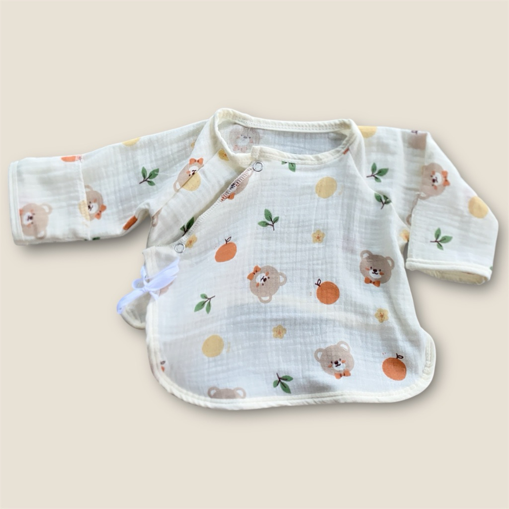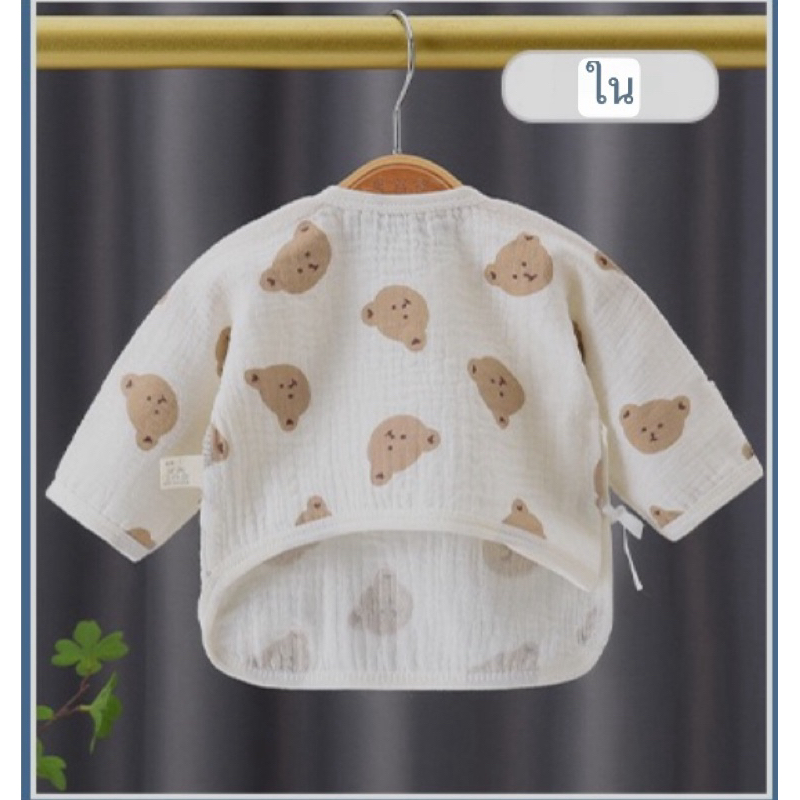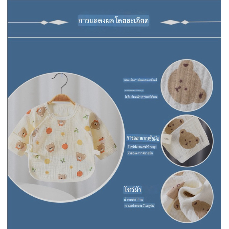 Newborn Baby Long Sleeve Shirt Wrinkled Muslin Fabric Children's Long-Sleeved With Front Tie Comfortable To Wear