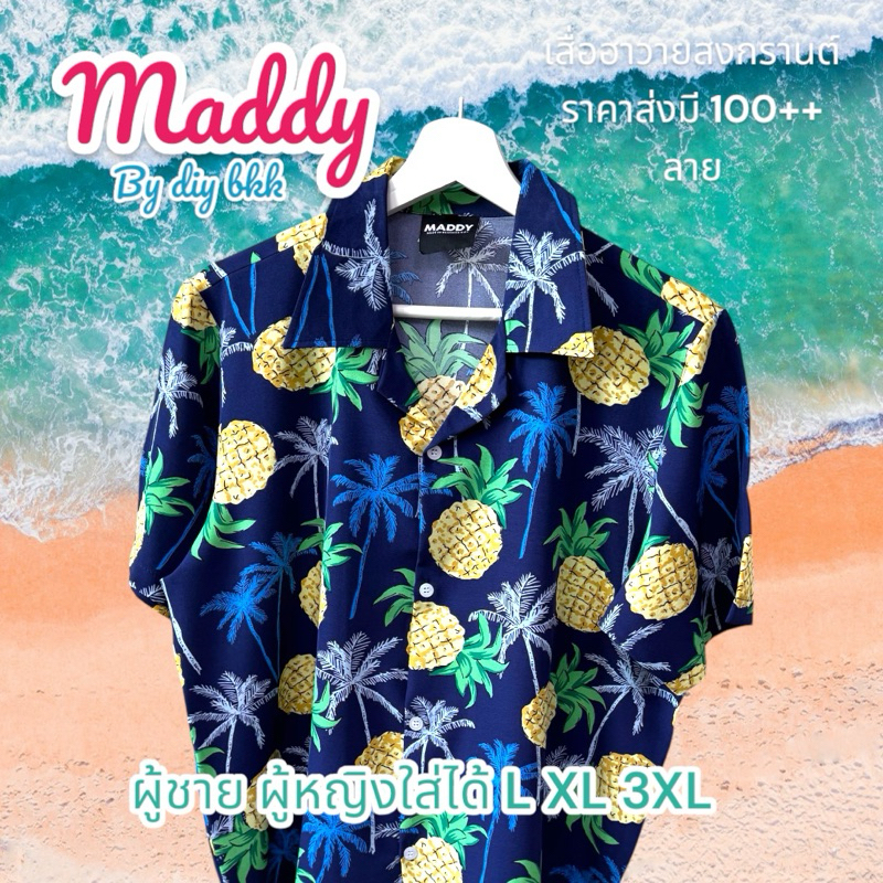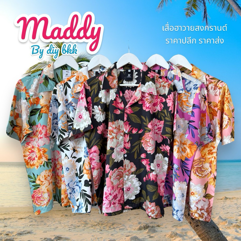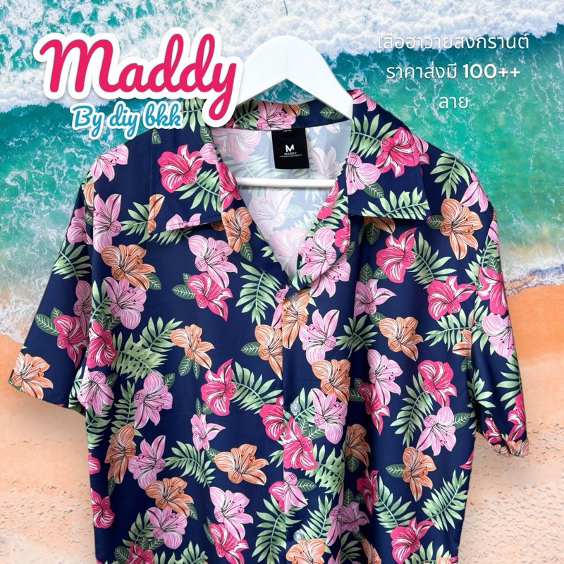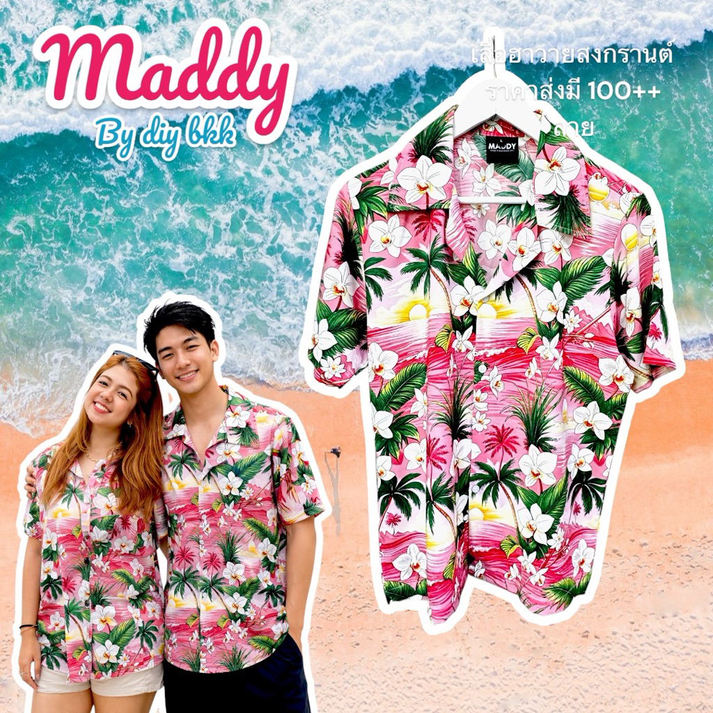 Songkran Shirt 2026 Hawaiian Printed With Flowers Hibiscus S L XL Leaves Men And Women Can Wear Them. Sea