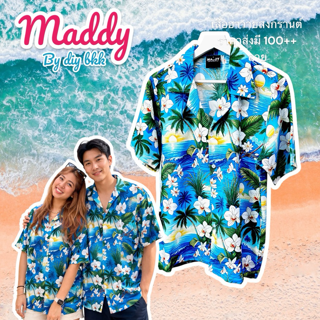 Songkran Shirt Fast Delivery 24 Hours Urgent Sea Pattern New 2026 Hawaiian With Floral Women And Men Spun Fabric Tie-Dye