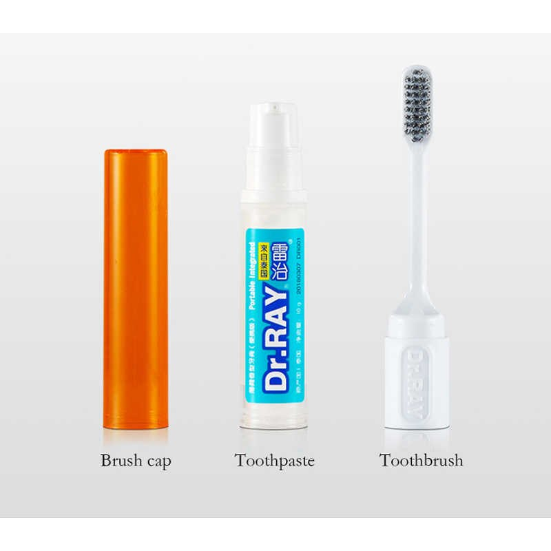 Dr. Ray Portable Toothbrush + Toothpaste 10g In One Stick Soft Bristles Outside Twisted Add /D82