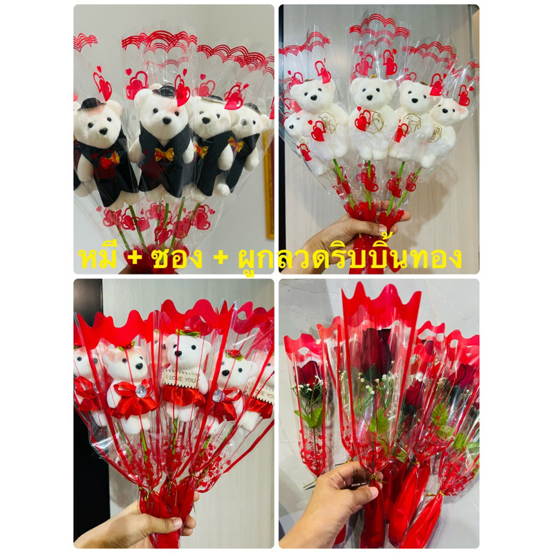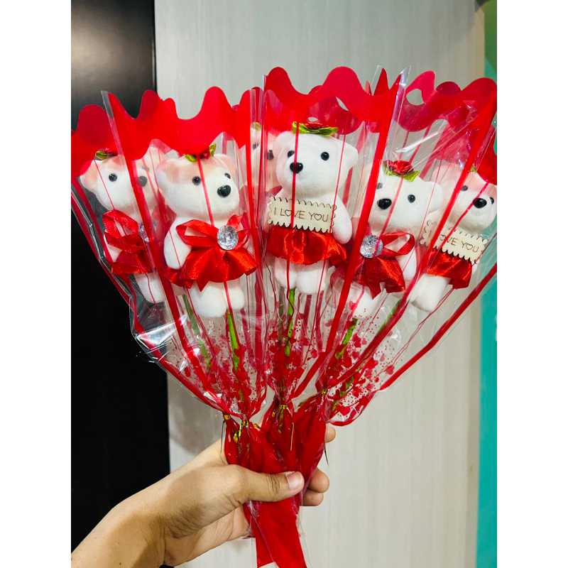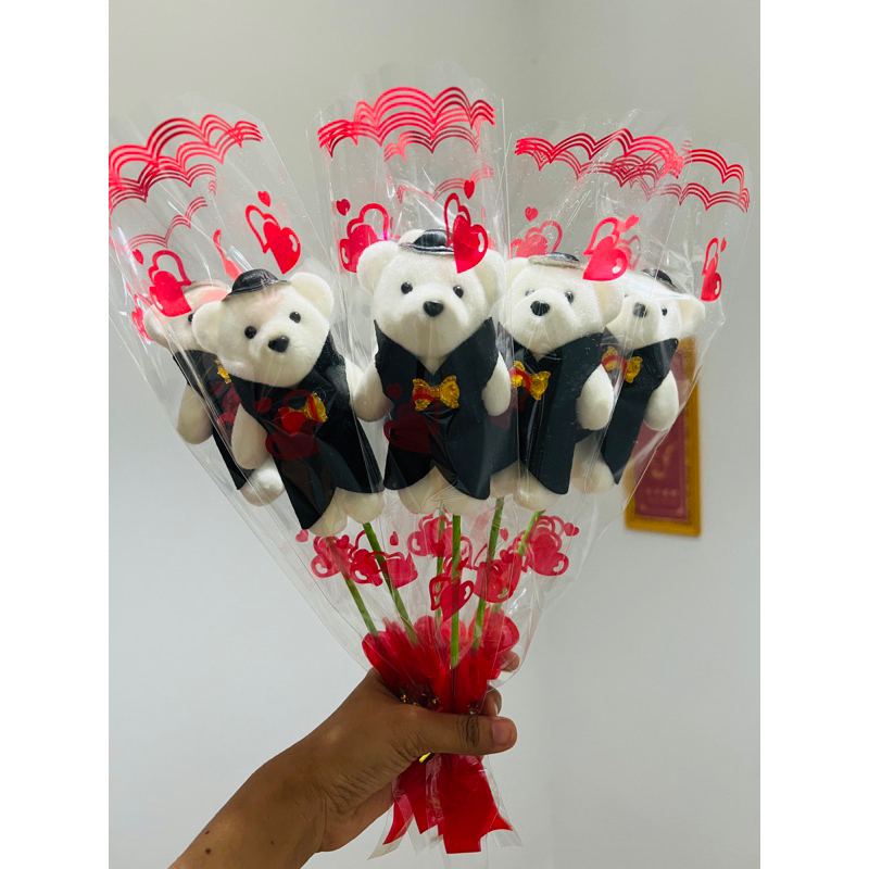 Bear Bouquet Valentine's Day Graduation Flower 4*30cm In A Good Bag Mixed Color Envelopes