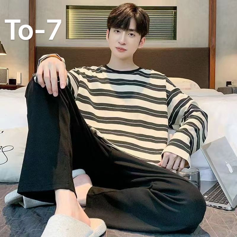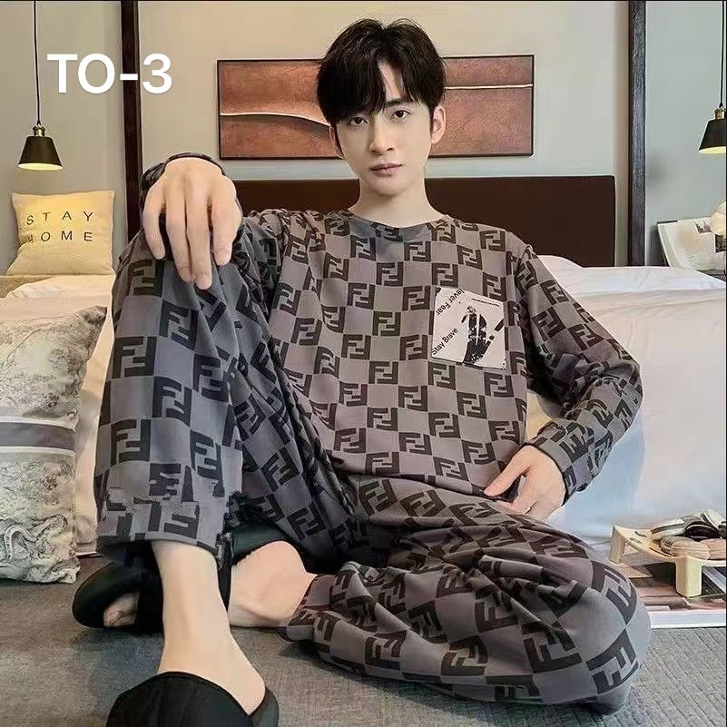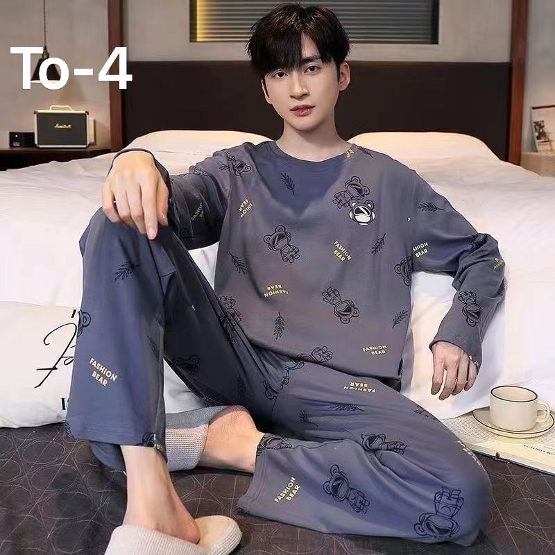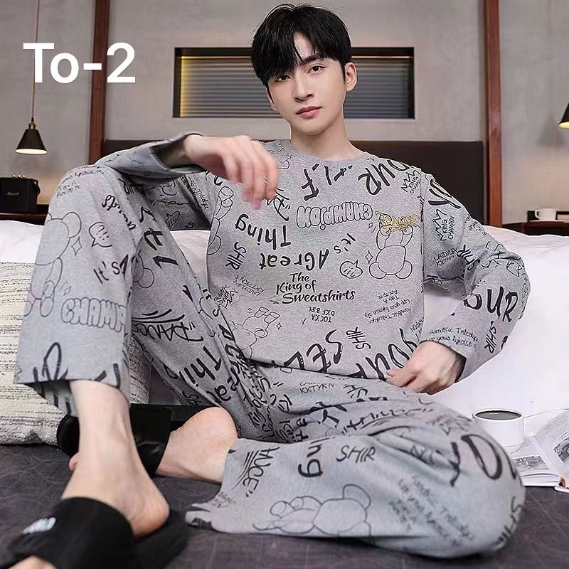 Men's Pajamas Long-Sleeved Shirt + Long Pants Printed Pattern In Thailand-TO