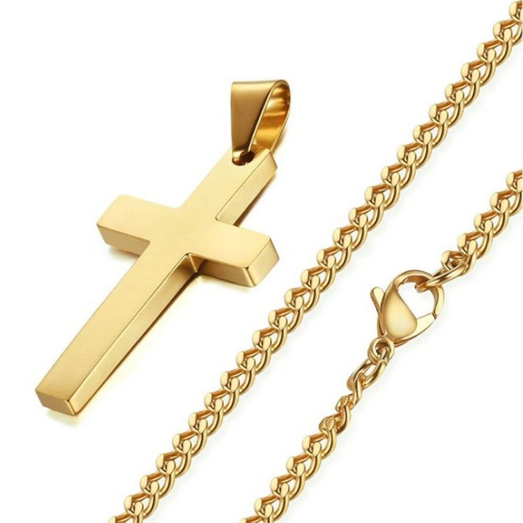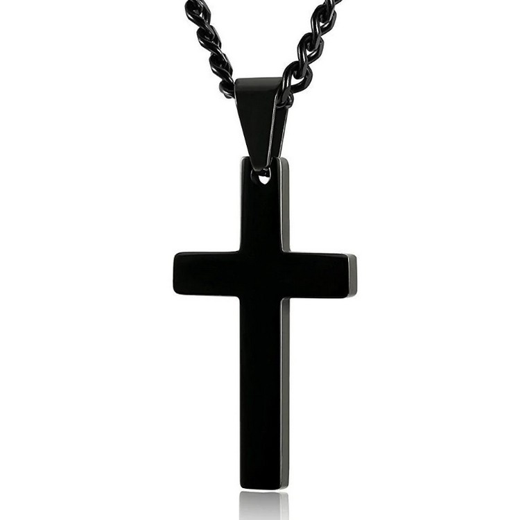 Vintage Cross Pendant Necklace Stainless Steel Black Chain Christian Jesus Cross Necklace
