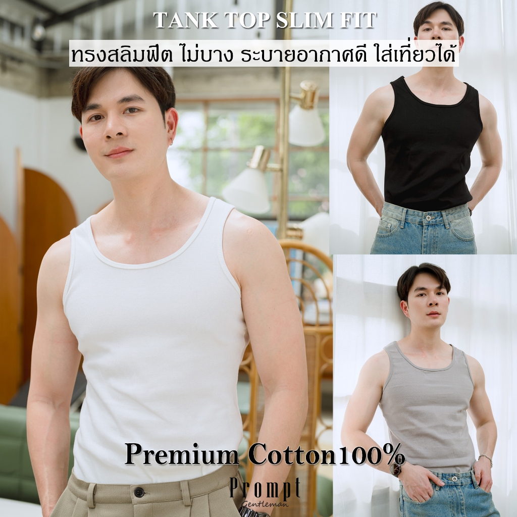 Men's Prompt Tank Top Slim Fit 100% Cotton The Stretch Fabric Is Not Thin. Good Ventilation Seen Inside M/L/XL