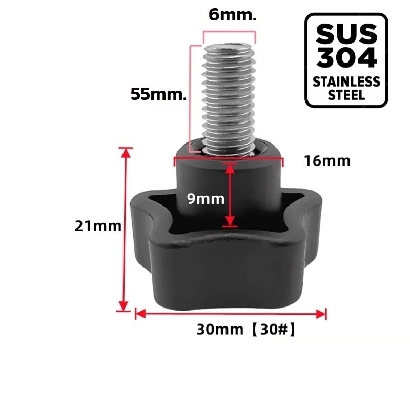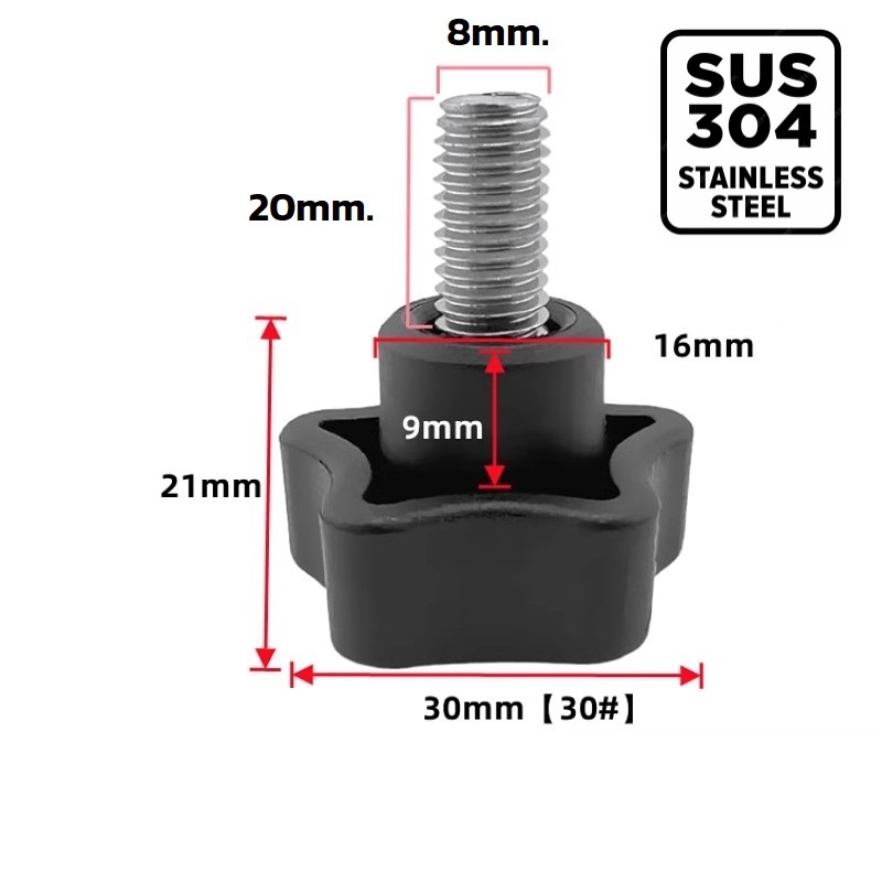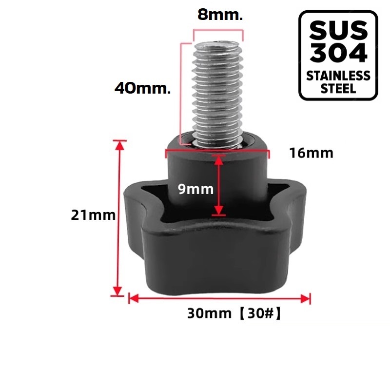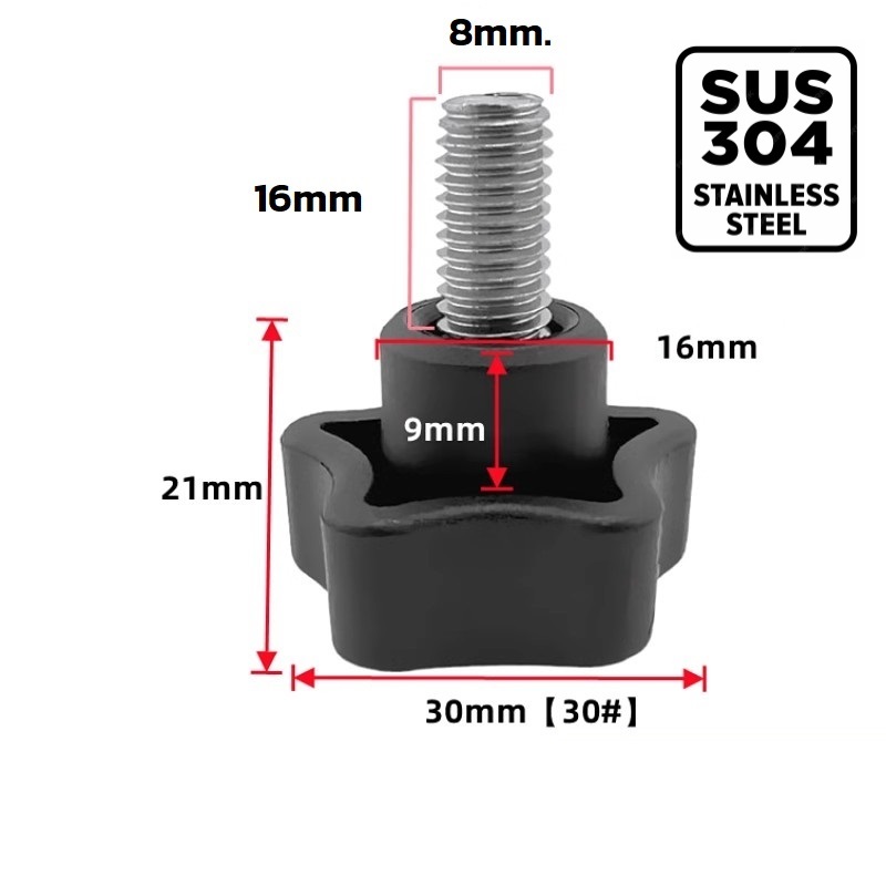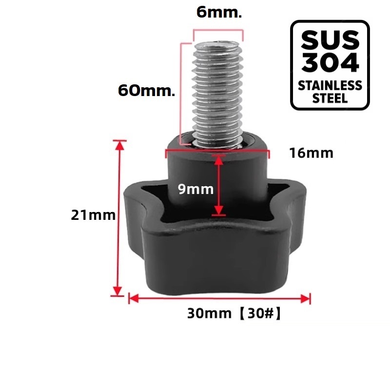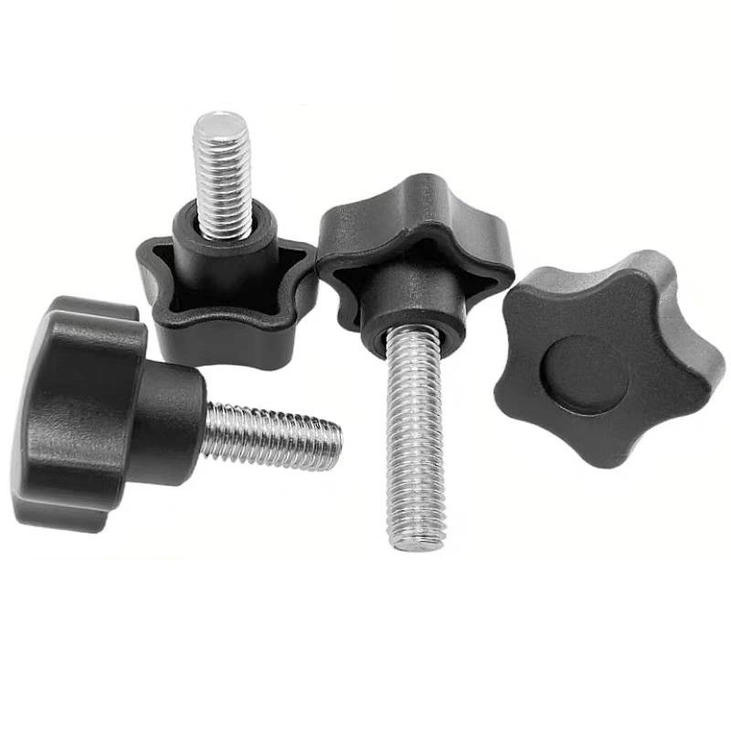 Flower Hand Crank Stainless Steel 304 M6-M8 Length 16-60 mm. Black Plastic Male Star Grip Knob Bolt