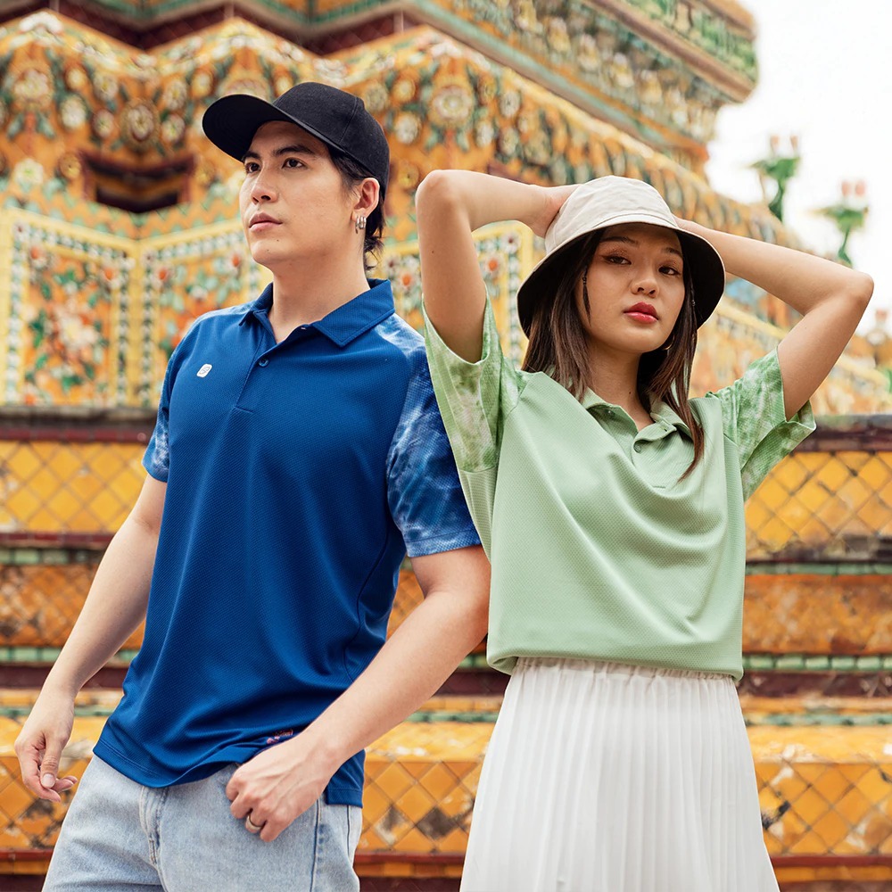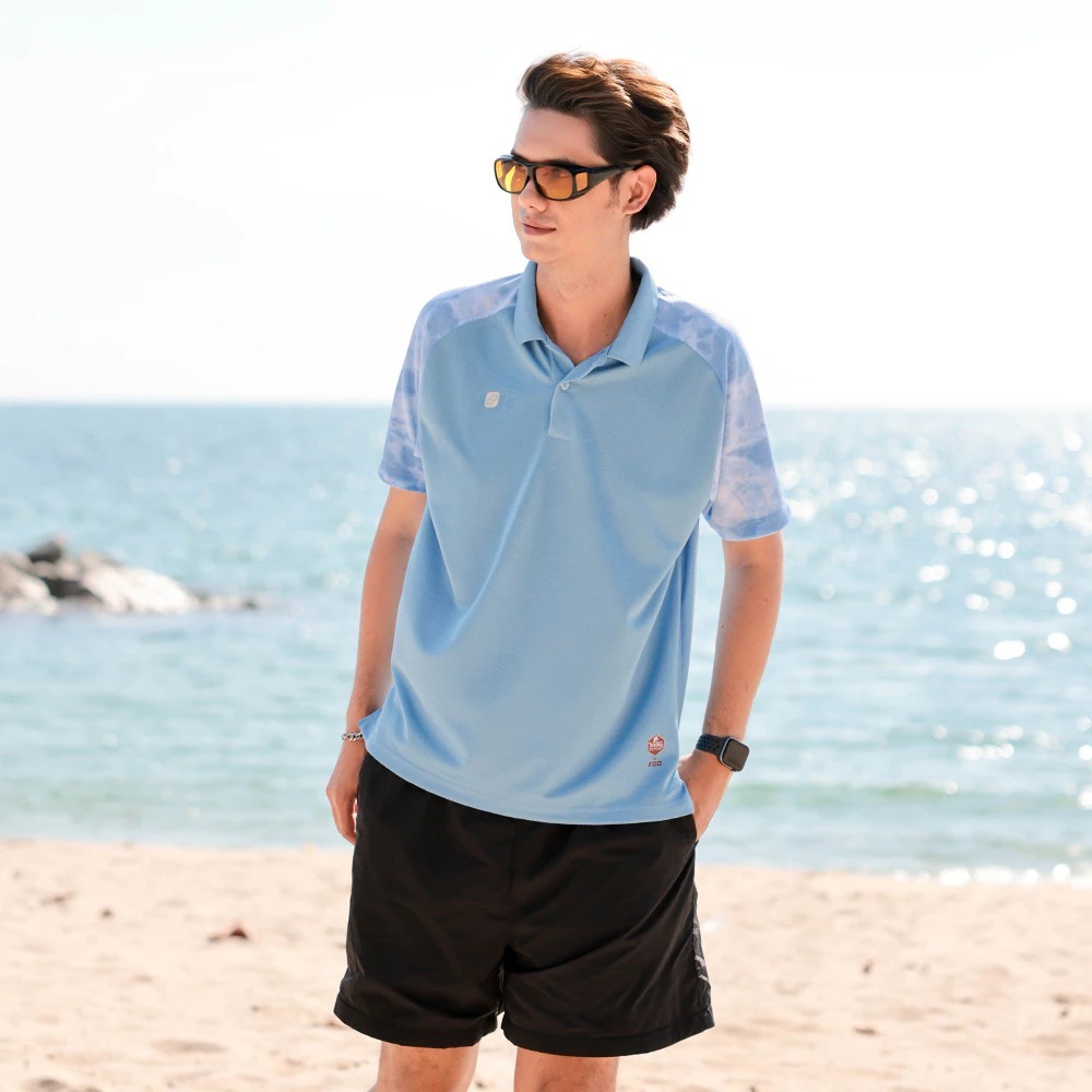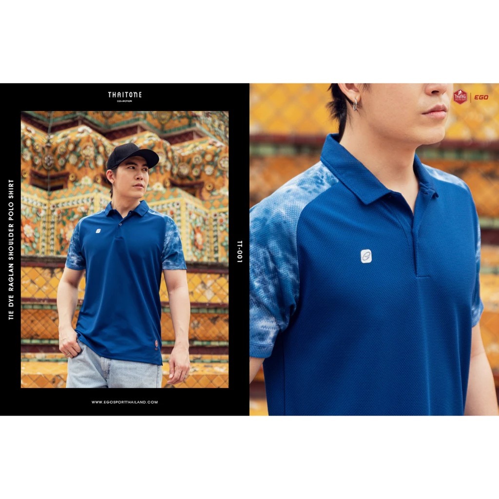 EGO SPORT TT001 Polo Shirt Slope Shoulder Tie-Dye x THAITONE Blue Green Purple Tone Polo Shirt Polo T Shirt
