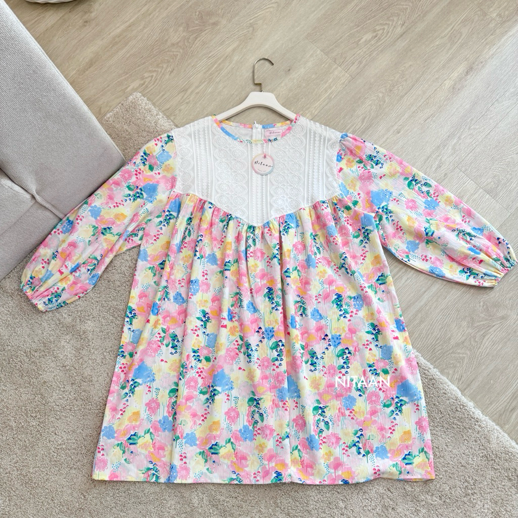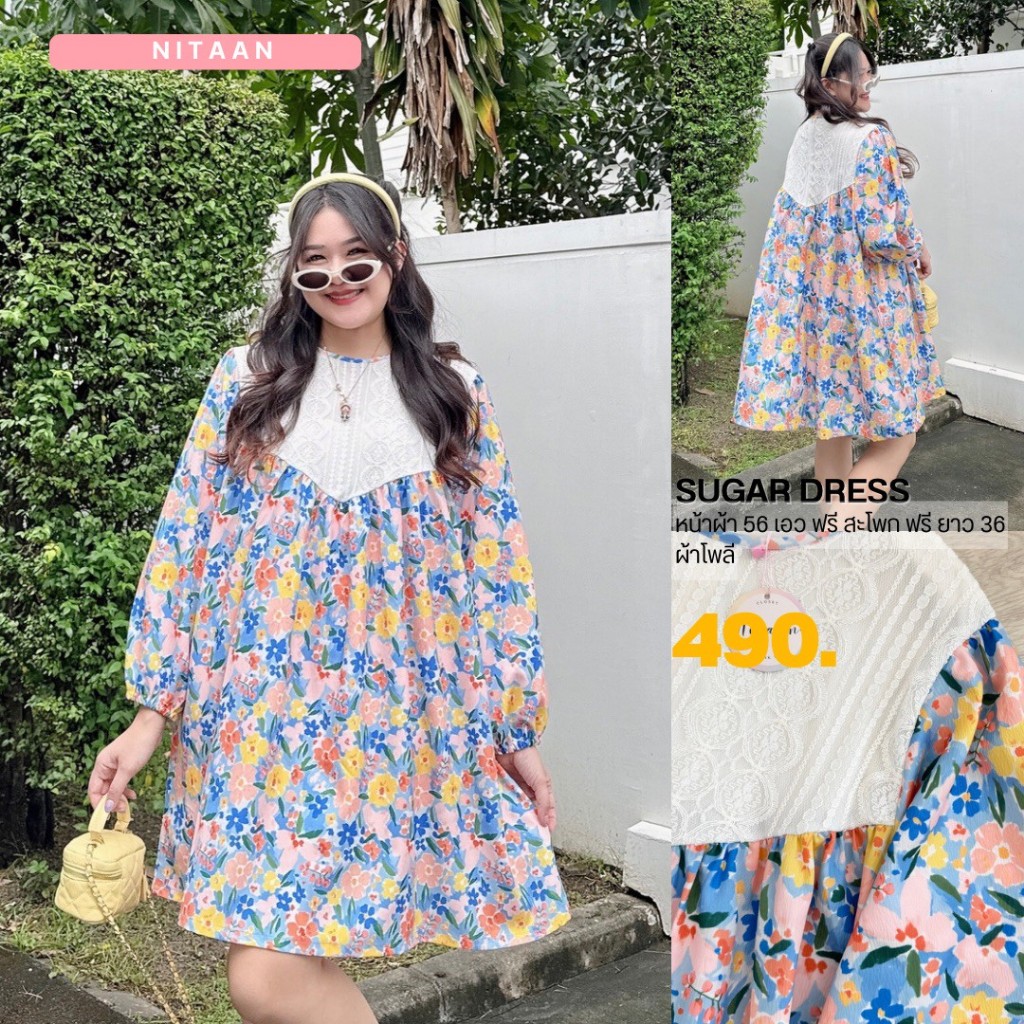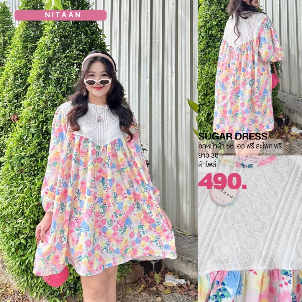 NITAAN SUGAR DRESS Everyone Very Sweet Beautiful. Polyester Fabric Cool Lace Collar Wide Shape Comfortable To Wear.