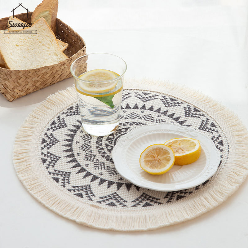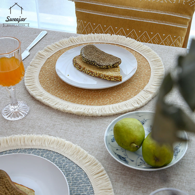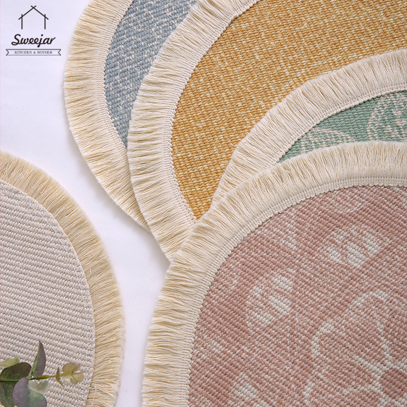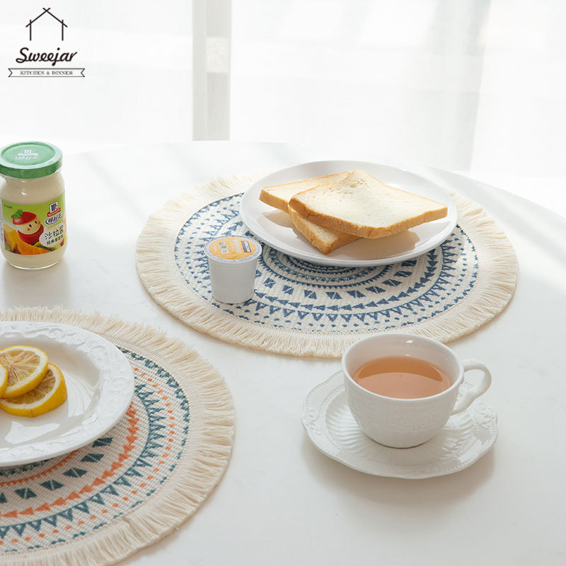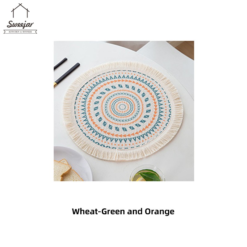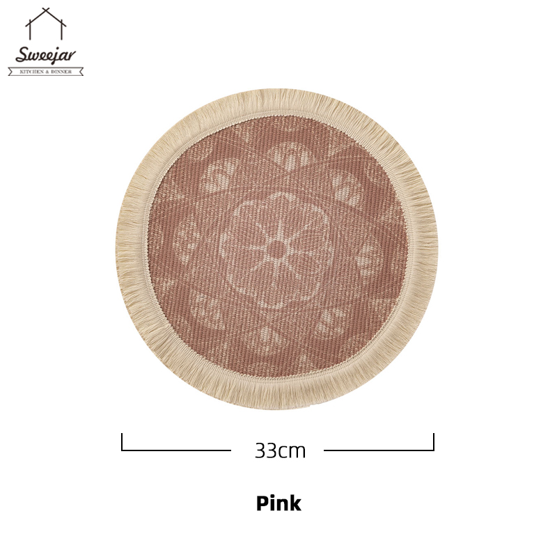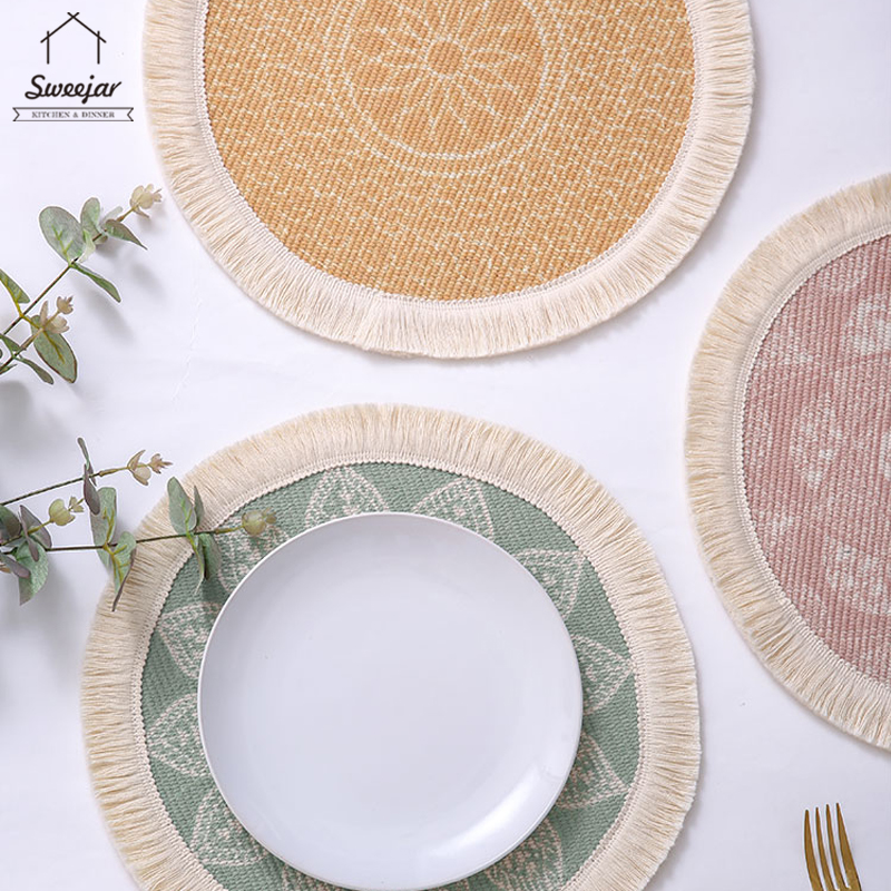 SWEEJAR Bohemian Placemat with Tassel Anti-slip and Heat Insulation Coaster for Tableware Mug