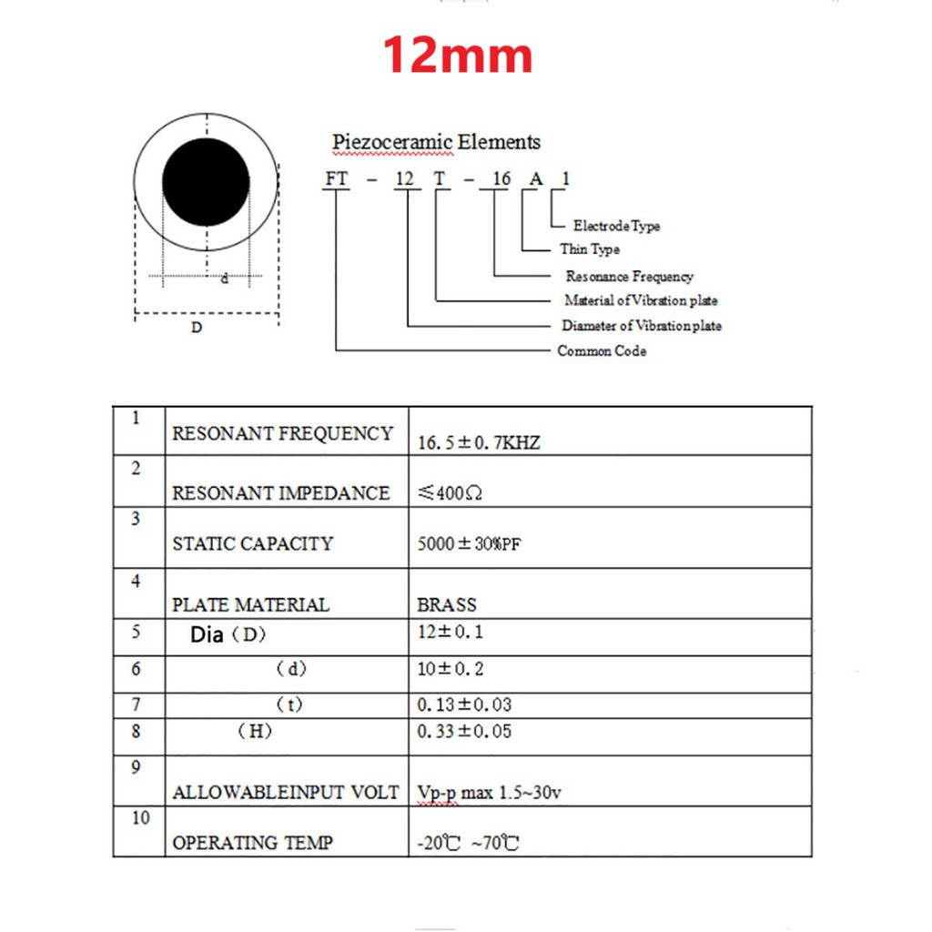 Piezoelectric Ceramic with Wires 20 / 27 / 35mm Piezo Plate Piezo Disc