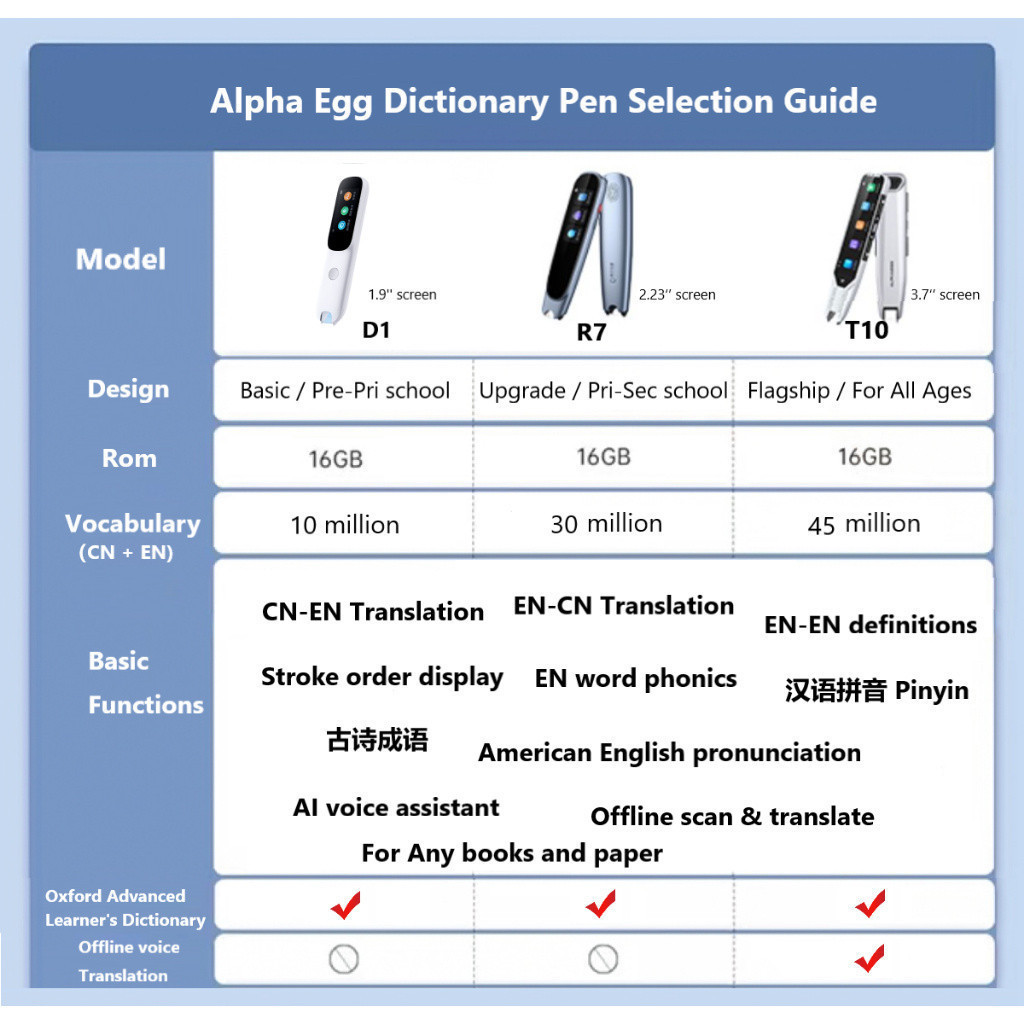 NEW Alpha Egg Dictionary Pen R7/T10/D1 Chinese & English Learning Tool Translator Intelligent Reading Pen