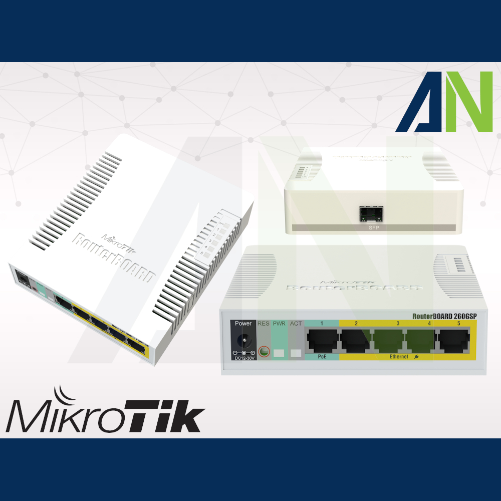 MikroTik Cloud Smart Switch RB260GSP CSS106-1G-4P-1S | 5x Gigabit Ethernet (4x Passive PoE), 1x Gigabit SFP | Web Manage
