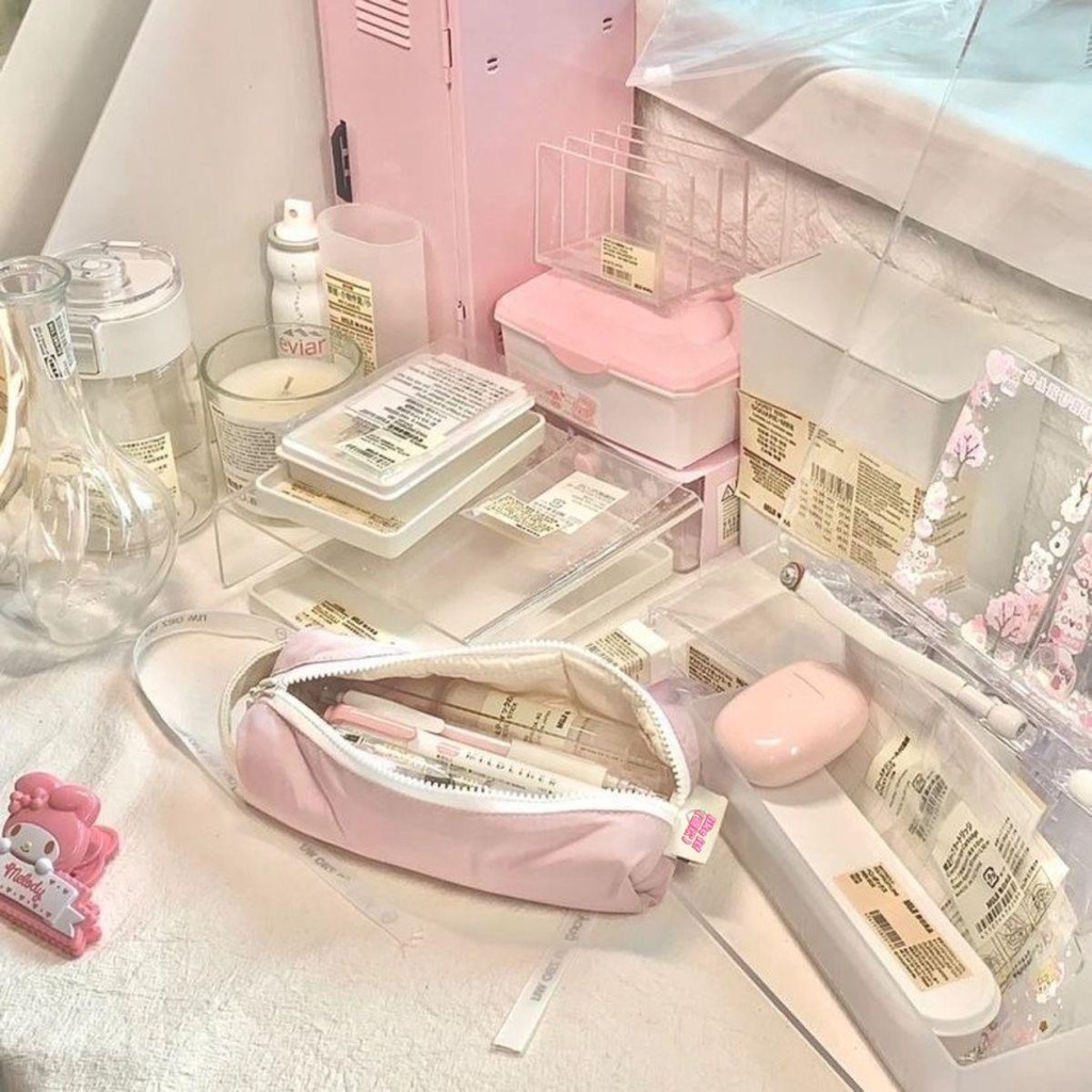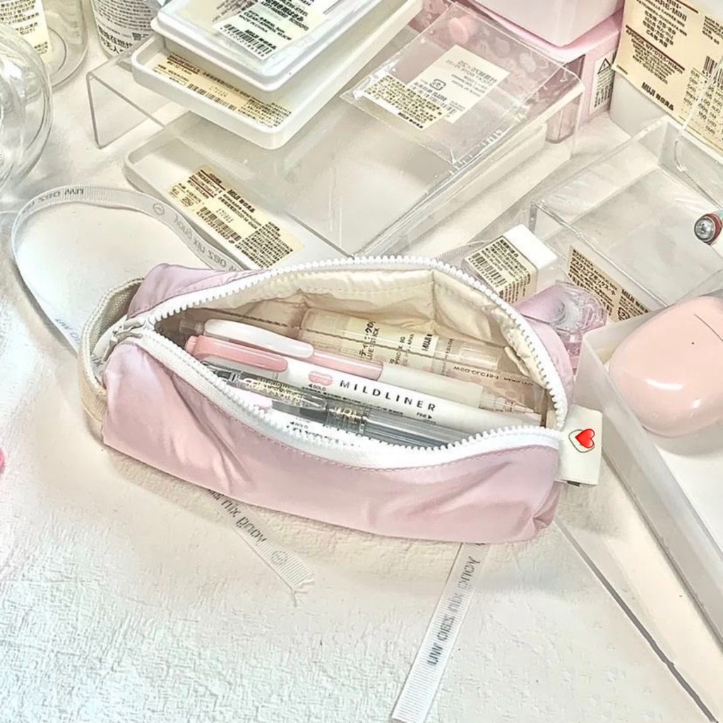 Japanese Cream Square Pen Bag Soft Large Capacity Pencil Case Simple Storage Bag Stationery Box