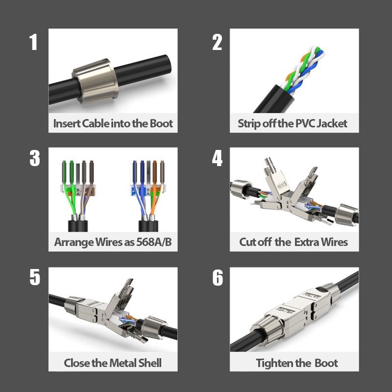 ZoeRax Cat6A Cat7 Cable Extender Junction Adapter Connection Box RJ45 Lan Cable Extension Connector Full Shielded Tool