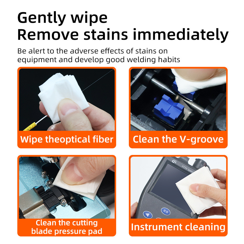 Zoreax Fiber Optic Cleaning Wipes 110x210mm Ultra Low Dust Electrostatic Wood Pulp Paper For Fusion Splicer VGroove Cleaning Precision Instrument Wipes No Scratch Lab Grade