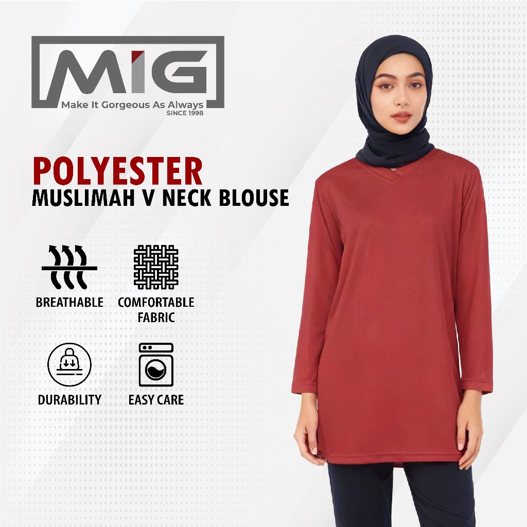 MIG Polyester Muslimah V Neck Blouse Muslimah Blouse Blouse Muslimah