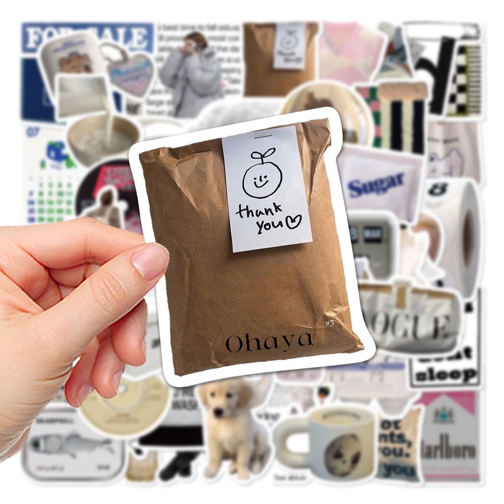 Ohaya 57pcs/set chic Decorative Stickers Waterproof Korean Style Material Luggage Laptop Phone Case ipad Thermos Cup Guitar Sealing