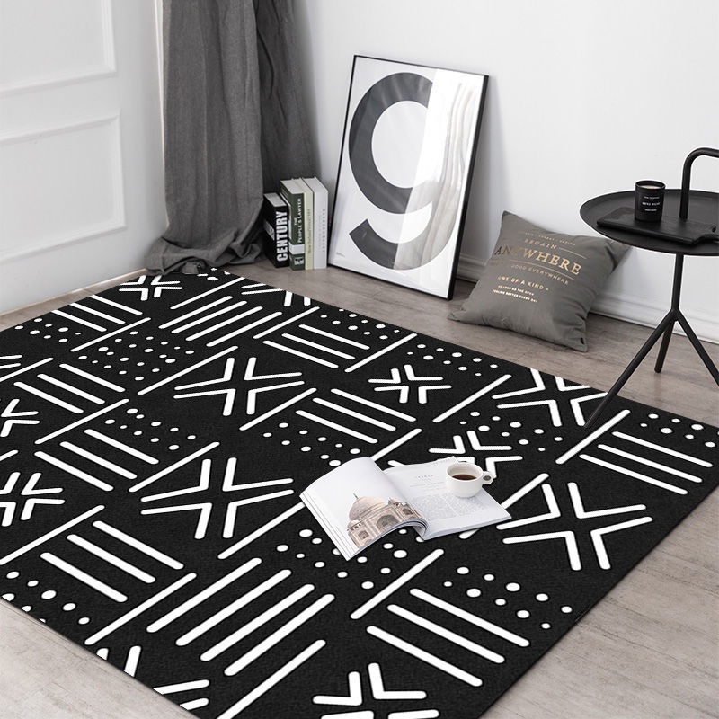 Nordic Carpet Black White Bedroom Full Bedside Blanket Girl Dirt-Resistant Living Room Cushion Room Floor Cushion