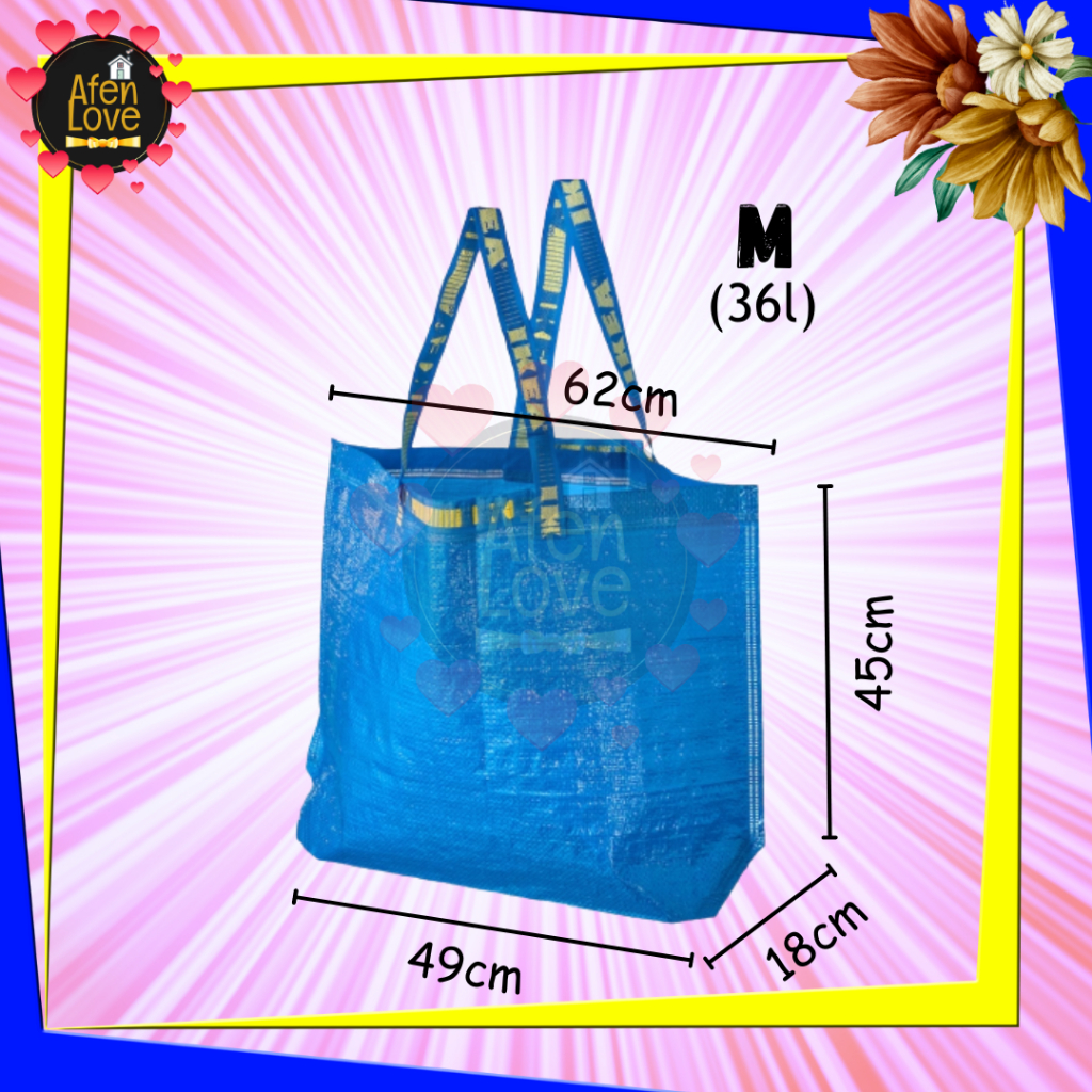 IKeA_Bag Frakta Beg IkeA Biru Zip Besar Kecil Baju Laundry Delivery Shopping Recycle Delivery Bag