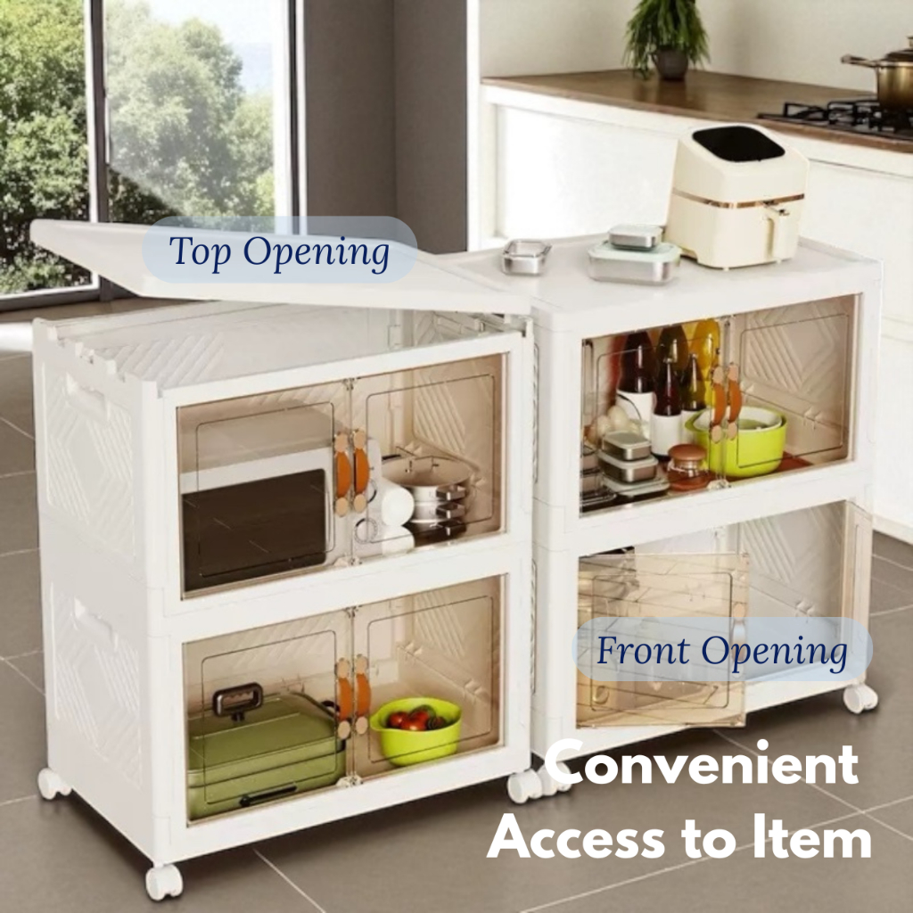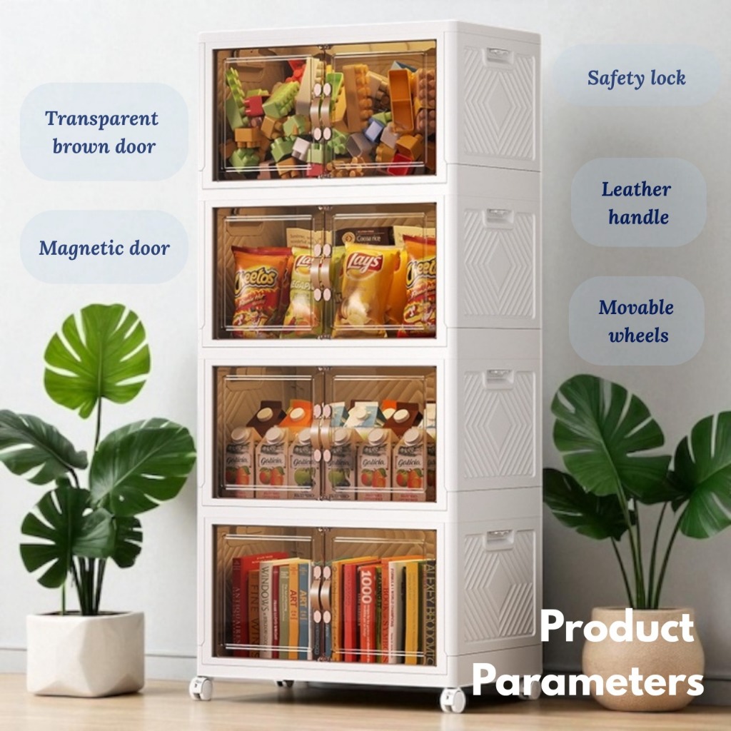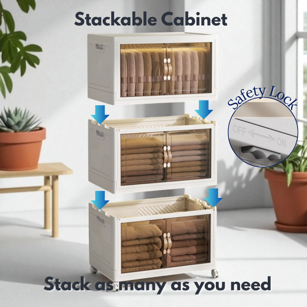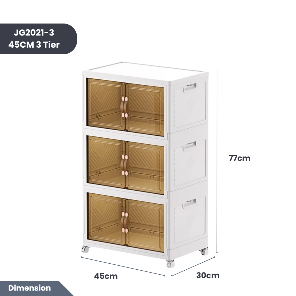 Easyhome.sg [EASY SETUP] JG Foldable Storage Cabinet with Wheels | Stackable Clothes Organizer Box | Wardobe Cabinet