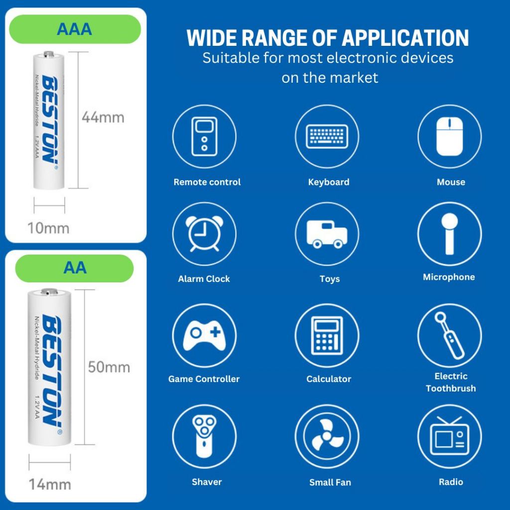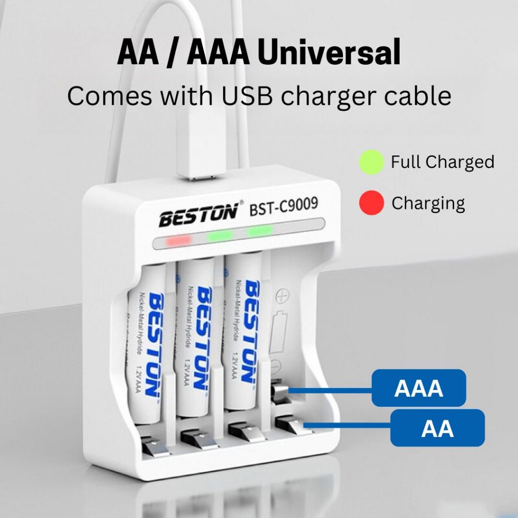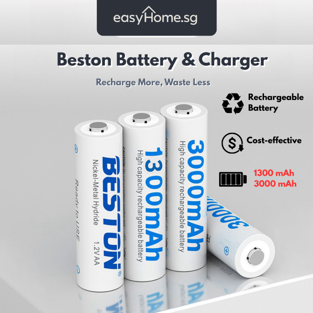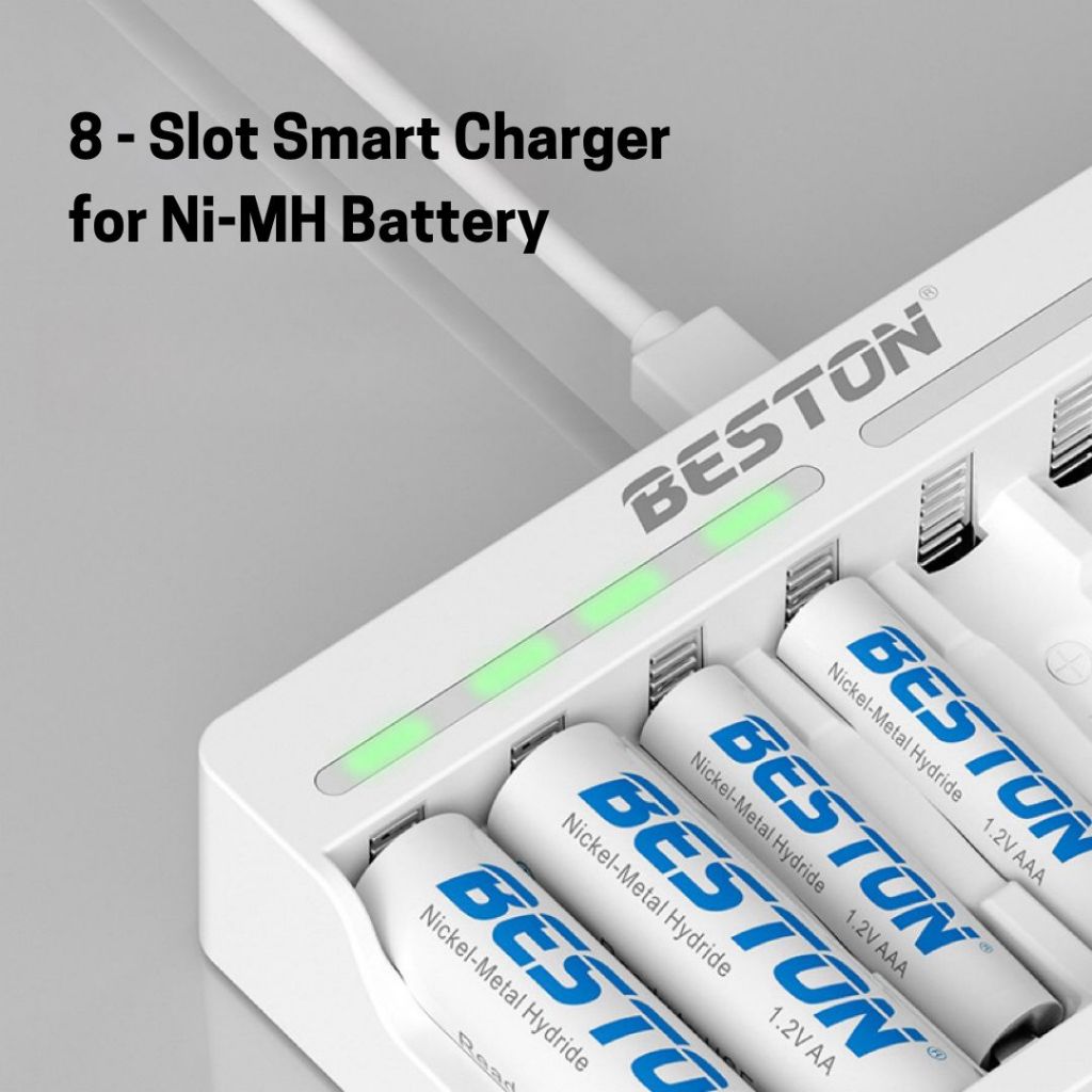 Easyhome.sg Beston AA AAA Rechargeable Battery Pack / 4/8 - Slot Rechargeable Battery Charger with USB Charging Cable