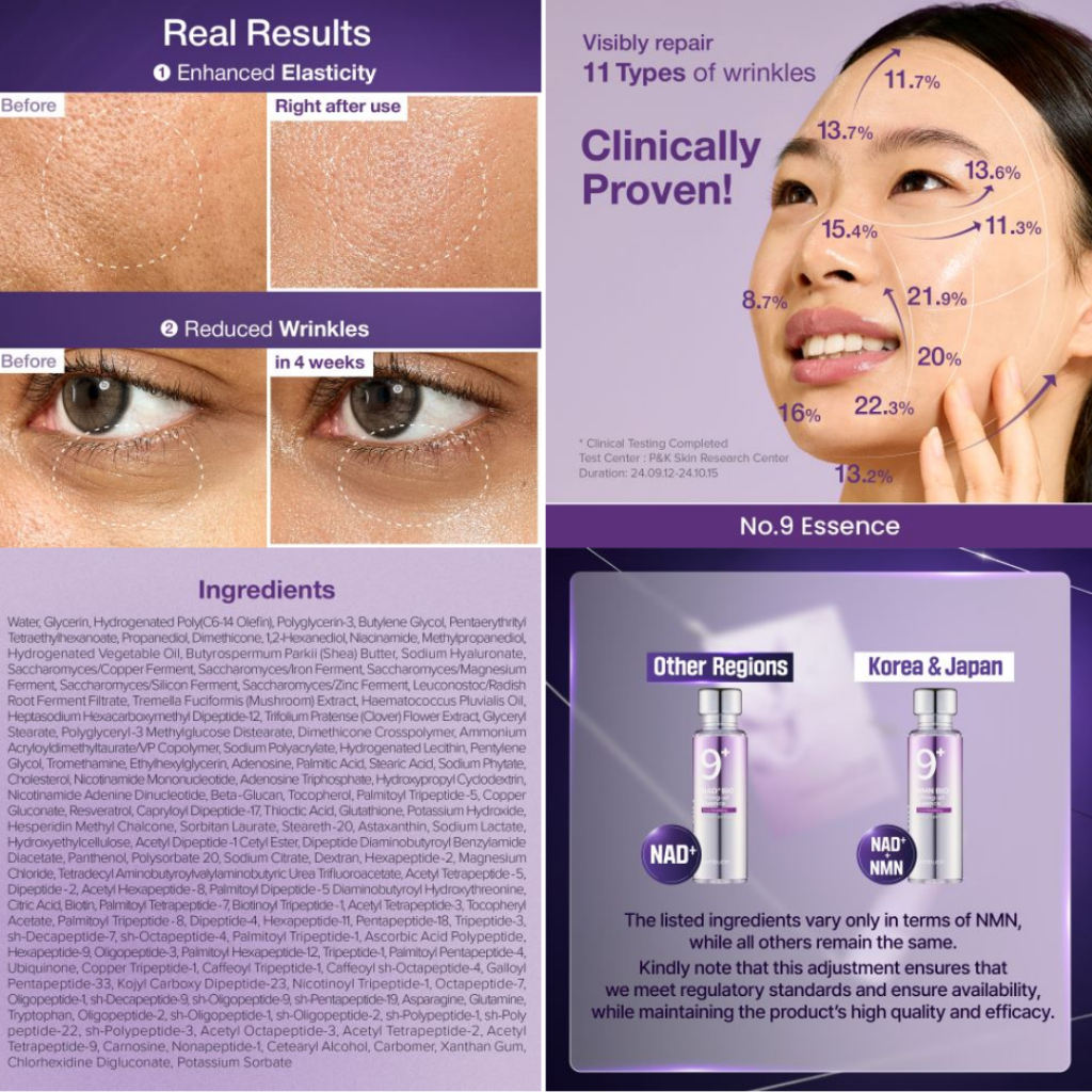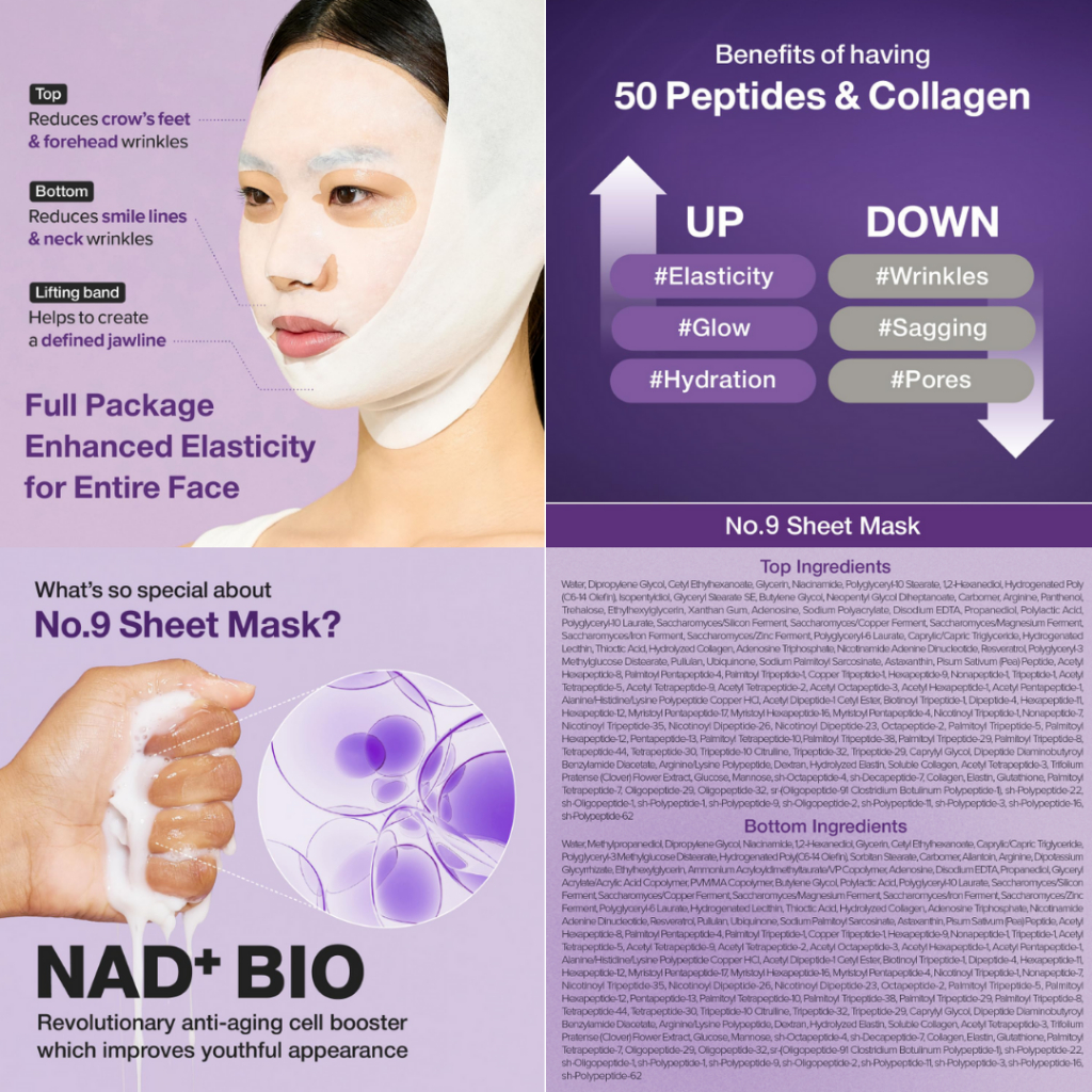(SG READY STOCKS) Numbuzin No.9+ Lifting Series (NAD & NMN) : Anti-Aging Toner, Essence, Eye Cream, Mask, Eye Patch