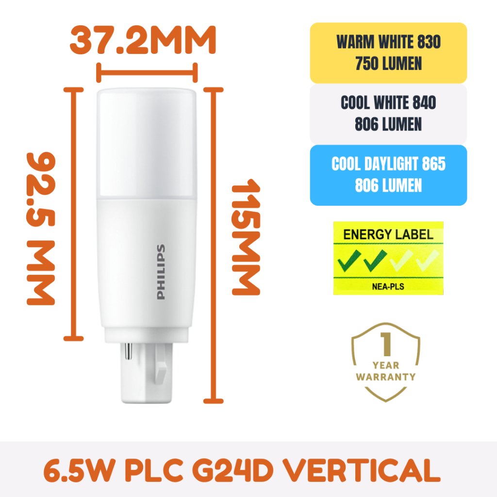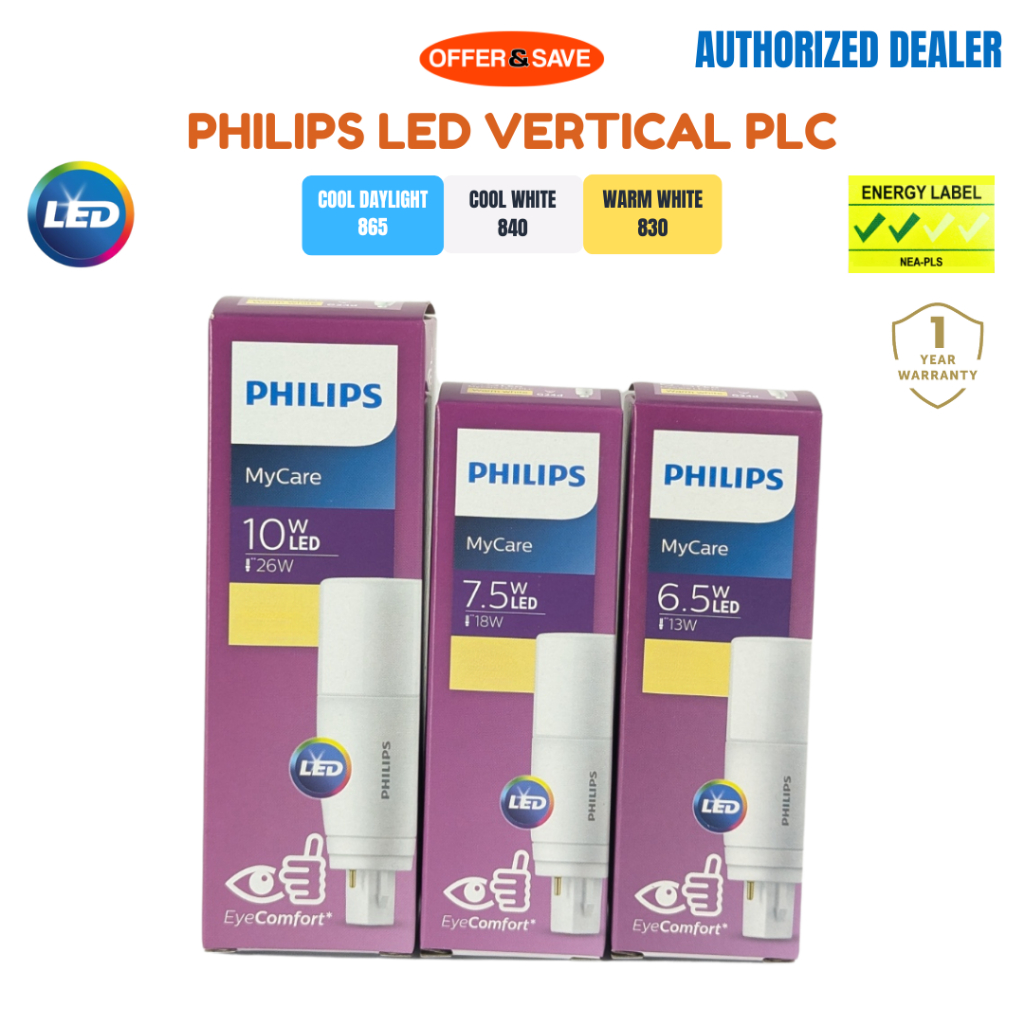 Philips LED Vertical PLC PL-C G24D 6.5W 7.5W 10W Light Bulb Warm White Cool Daylight [1 Year Warranty]