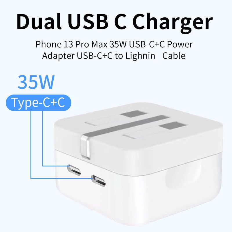 35W Dual USB C Fast Charge Type C Port PD 1M/2Meter Cable Charging UK Plug Wall Charger 20W Adapter Cable