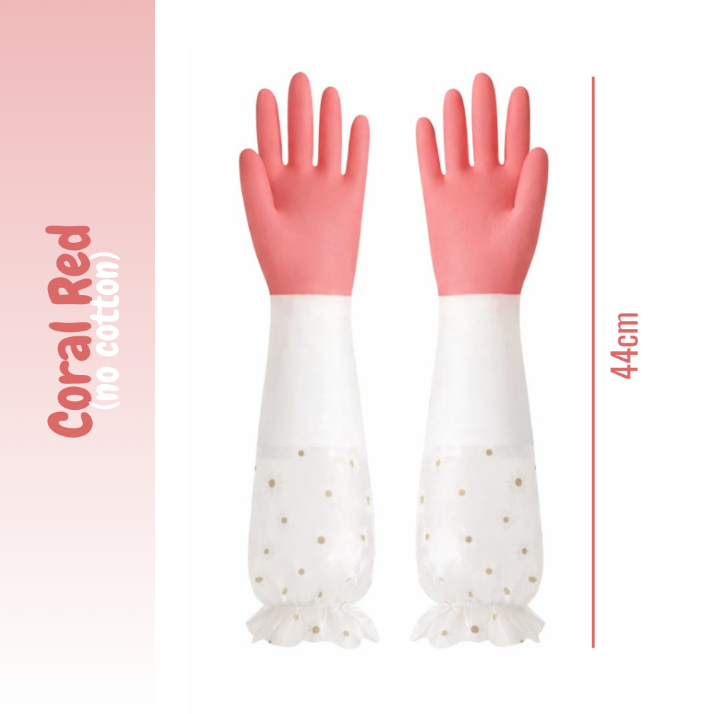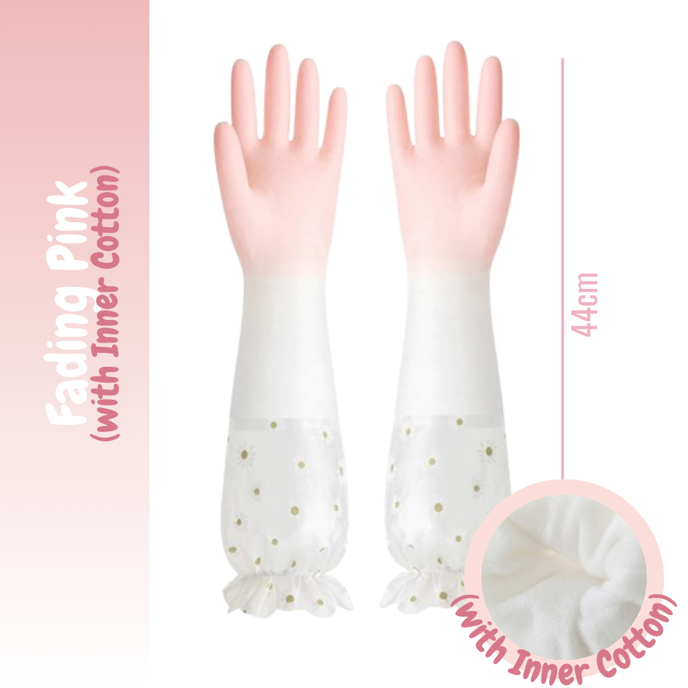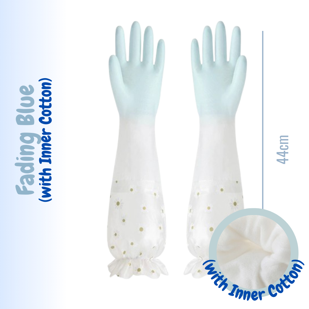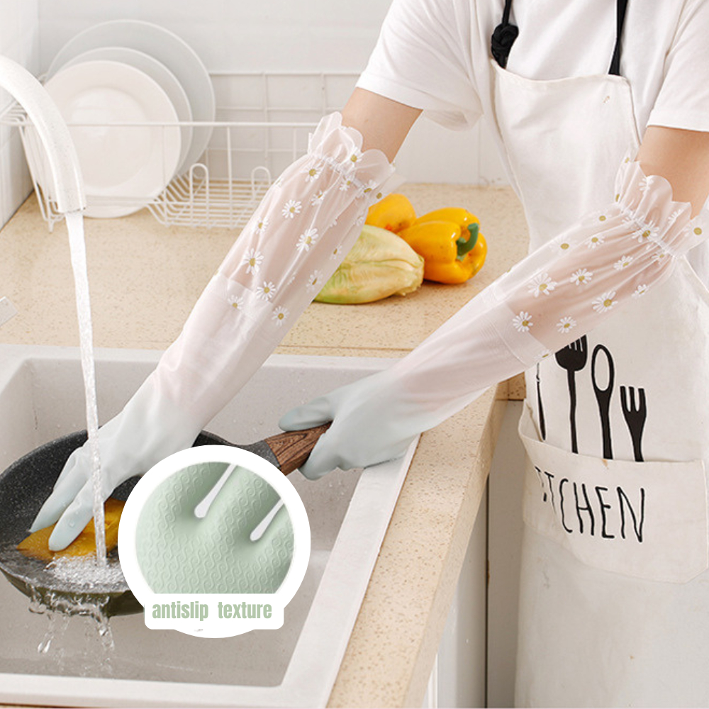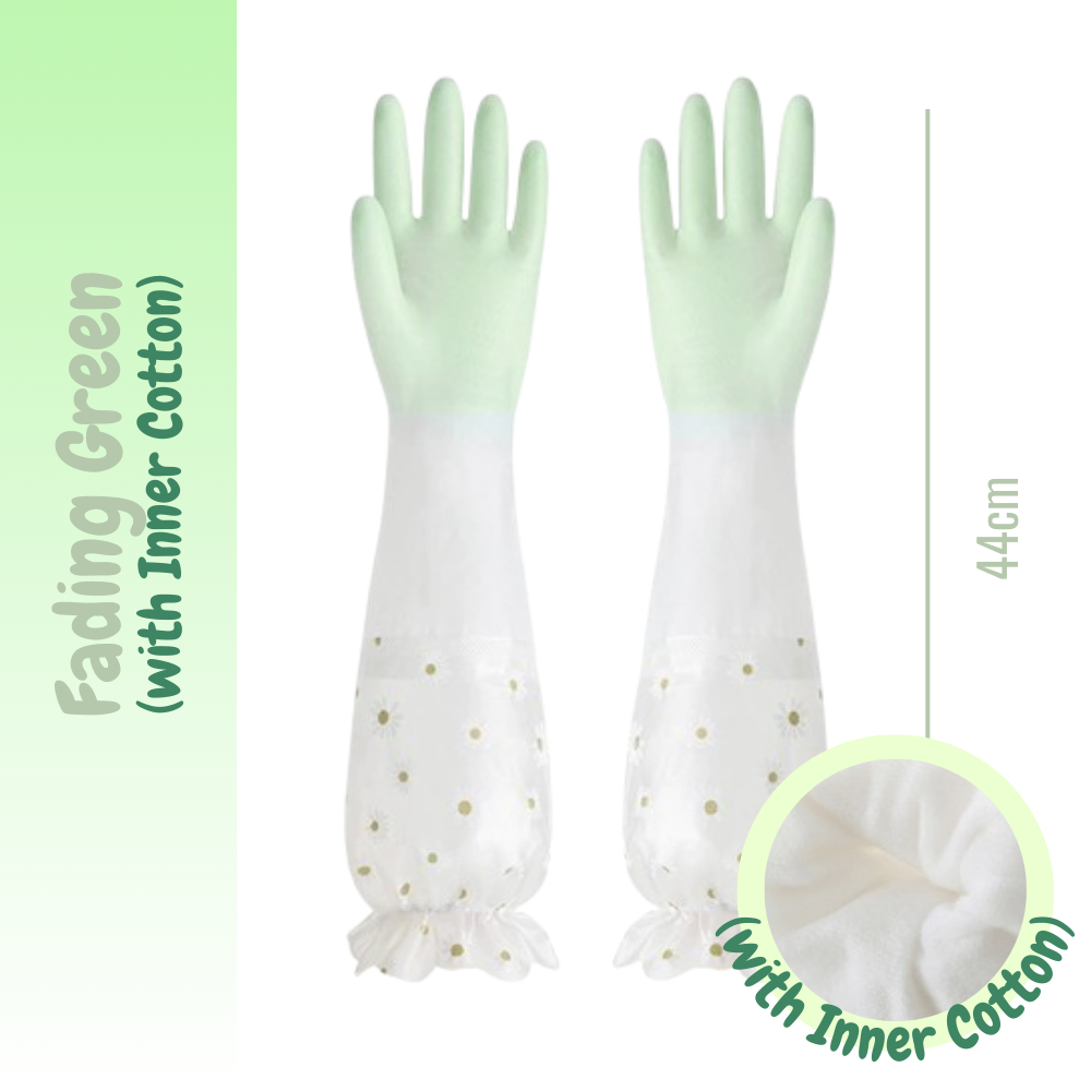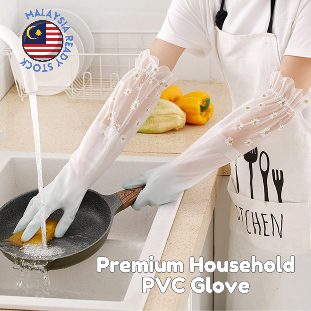 Kitchen Glove Long Washing Glove Anti-Slip Inner Cotton Sarung Tangan Plastik Cuci Pinggan 厨房手套 洗碗手套 Kitchen Gloves