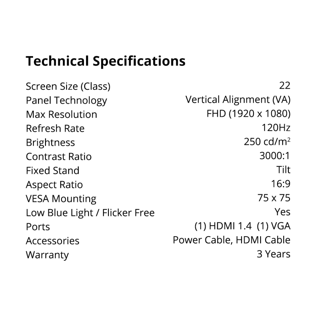 PRISM+ W220v | 22“ 120Hz Productivity Monitor Gaming Monitor [1920 x 1080]