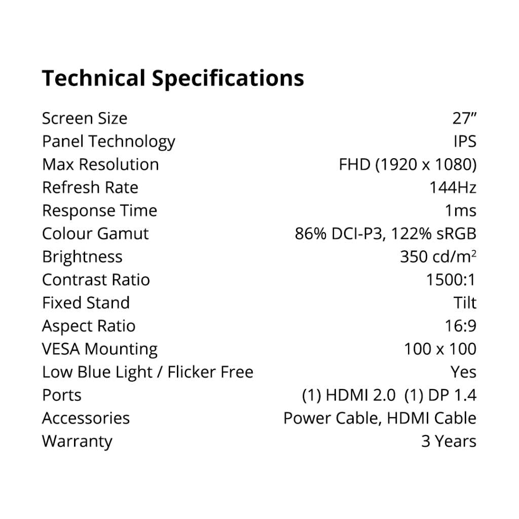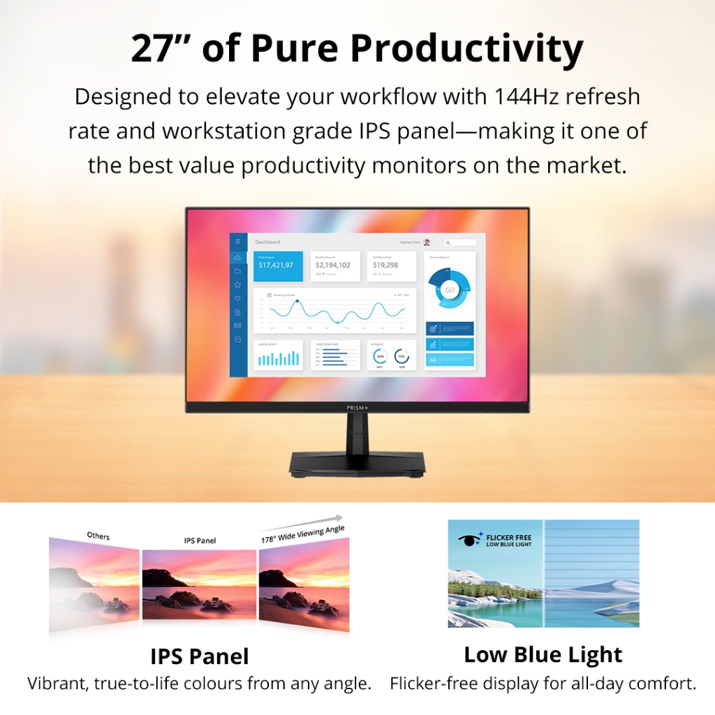 PRISM+ W270 | 27" 144Hz FHD [1920 x 1080] IPS Professional Monitor Productivity Monitor