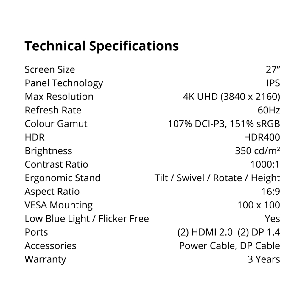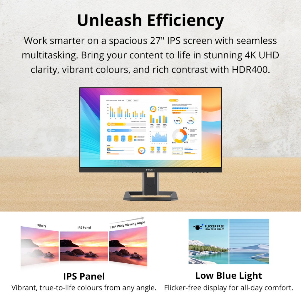 PRISM+ W270 Ultra | 27" 4K UHD 60Hz IPS Monitor Adjustable Stand