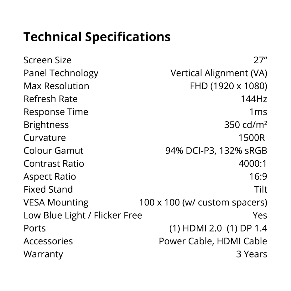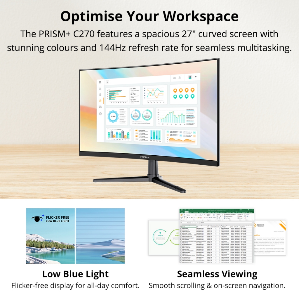 PRISM+ C270 | 27" 144Hz 1500R Curved Productivity Monitor [1920 x 1080]