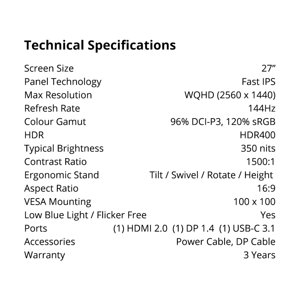 PRISM+ W270c PRO | 27" WQHD 144Hz Fast IPS Flat Monitor